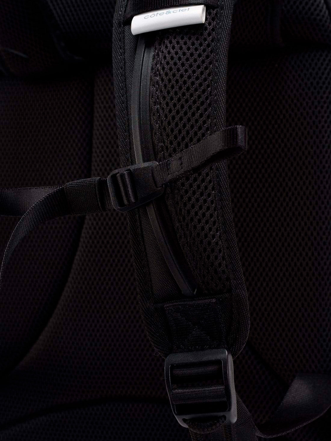メッシュのクッション素材があしらわれた背面パネルとショルダーストラップは柔軟でありながらしっかりとしたホールド感があり、アクティブなライフスタイルにも最適化。