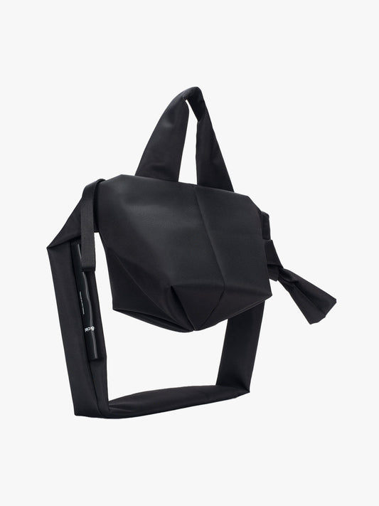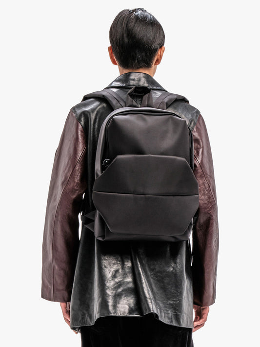 Sleek Nylonは、控えめな光沢と高密度な構造を特徴とする、滑らかで撥水性に優れたファブリックです。建築的なシルエットを実現するために選定されており、ハリがありシワになりにくい表面が、シャープなラインと彫刻のような透明感を精密に維持します。