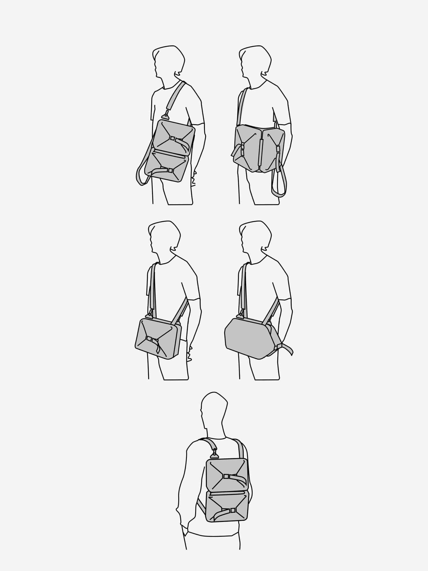 AARはラップアラウンド・クロスボディバッグ・バックパック・メッセンジャーバッグ・フライトパック…とアイデア次第で様々なスタイリングに代わるマルチウェイな鞄です。