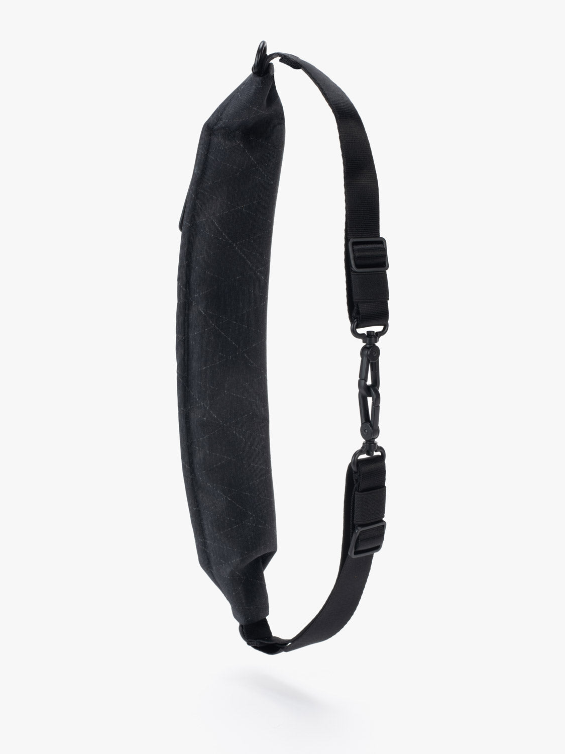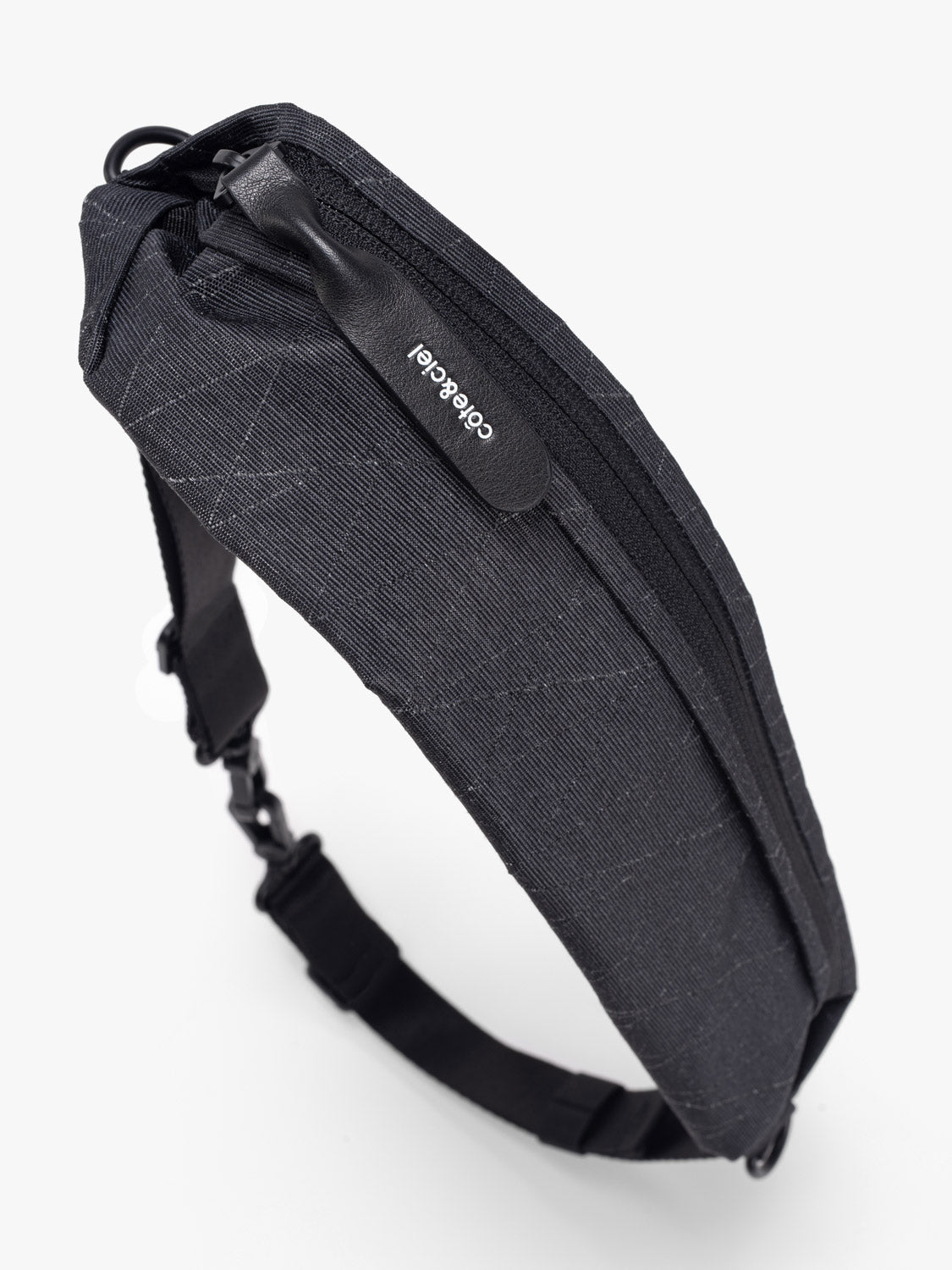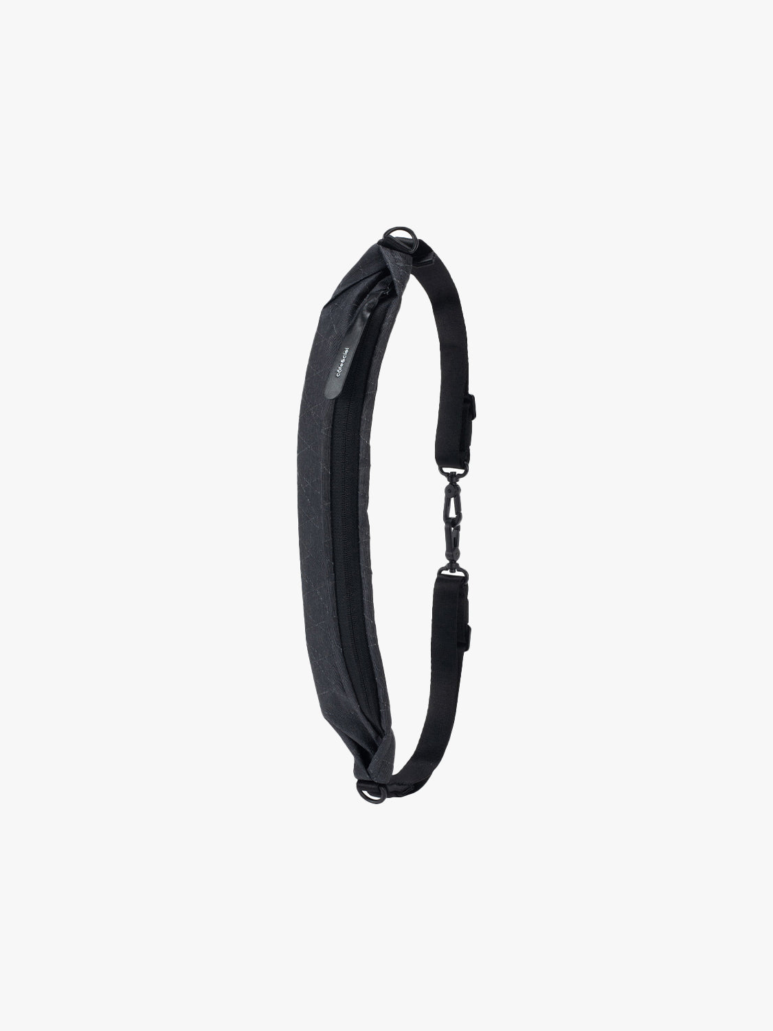 この黒いジッパー付きショルダーストラップは、ミニマルなクロスボディバッグとして、またはウエストに巻いて単独で使用できます。