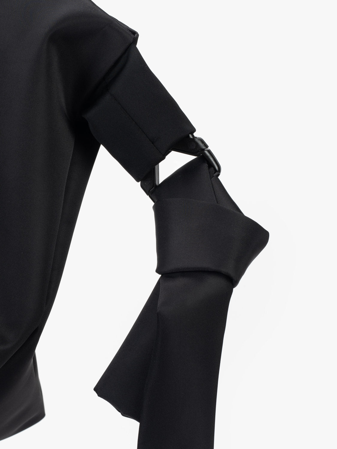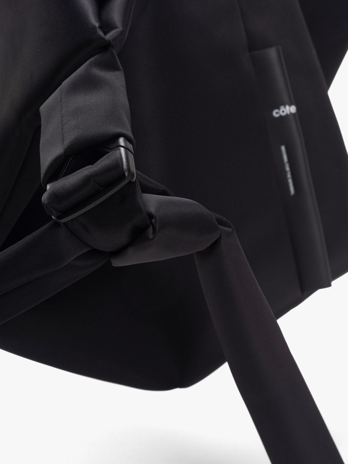 誇張されたシルエットは大きな本体を構える一方で、キャリーストラップは薄く設計されています。