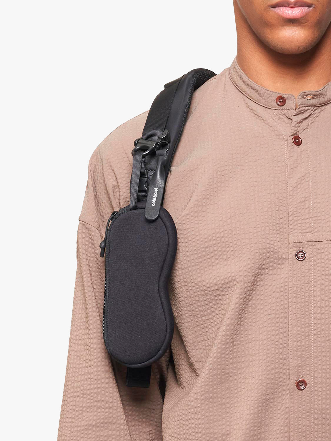 アイウェアポーチはランヤードやキーチェーンを付けることができますし、バッグに取り付ける事もできます。