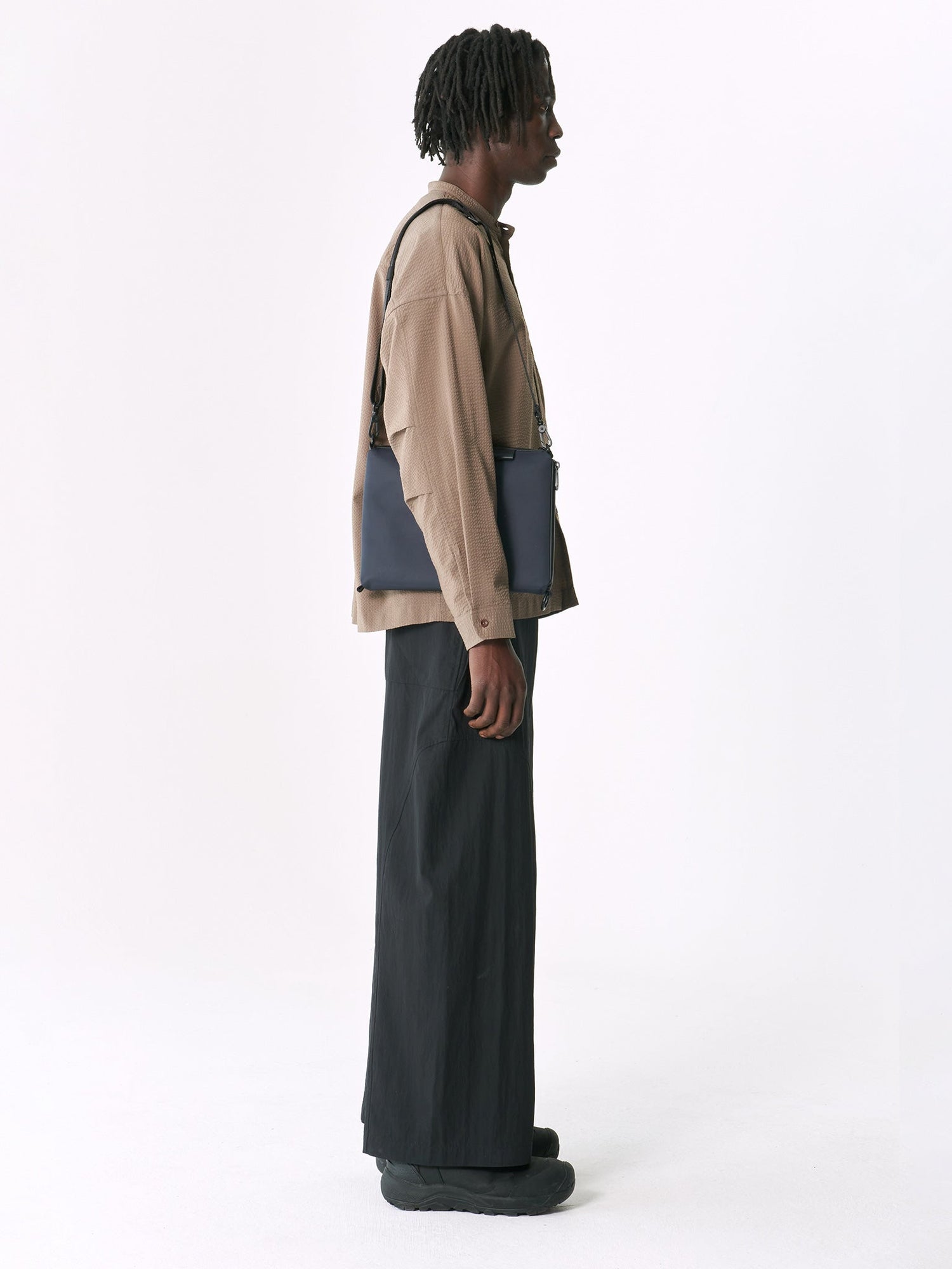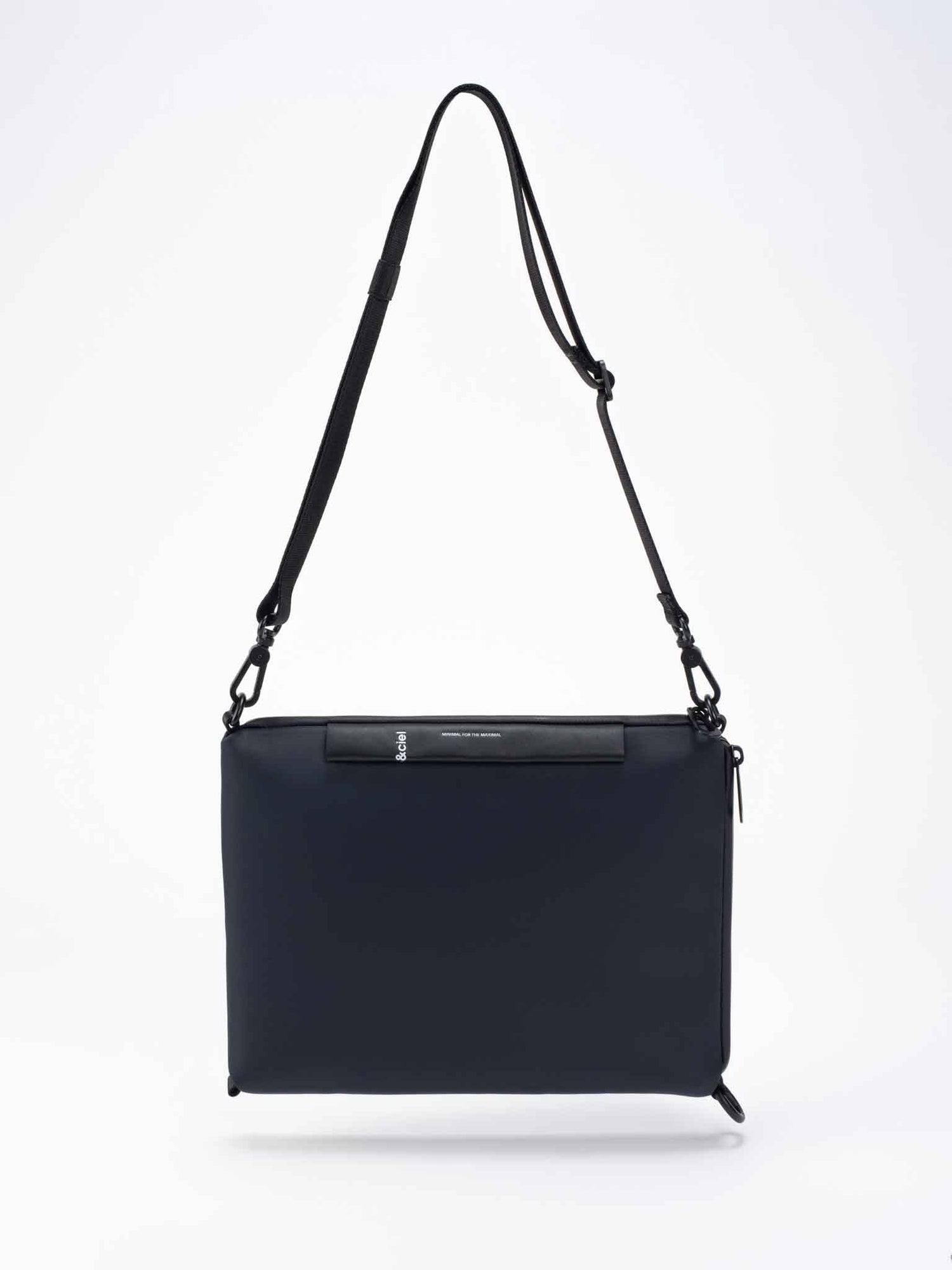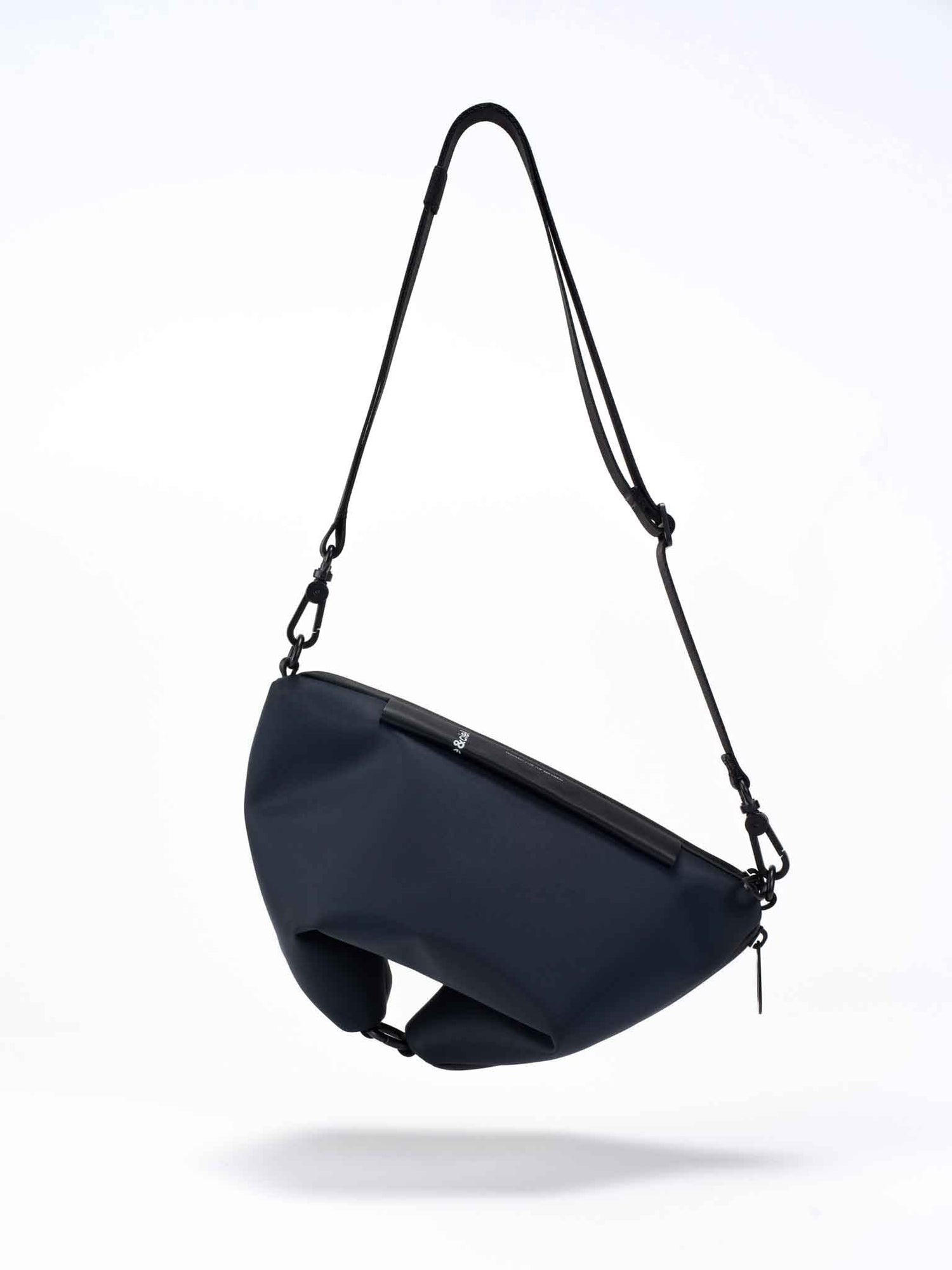 2つの角を丸いカラビナで繋ぐことで、バッグのシルエットが変化し、持ち方のニーズに合わせて調整できます。