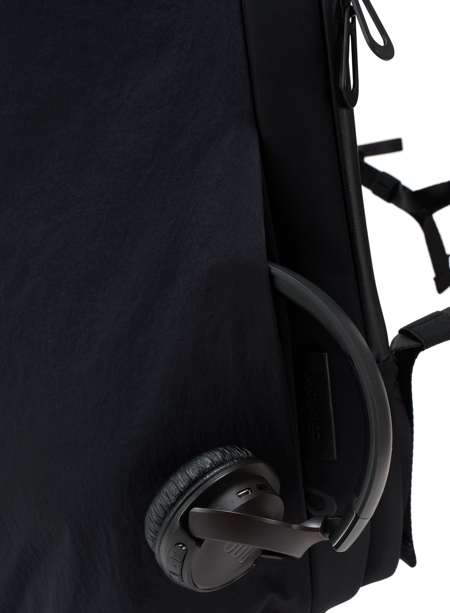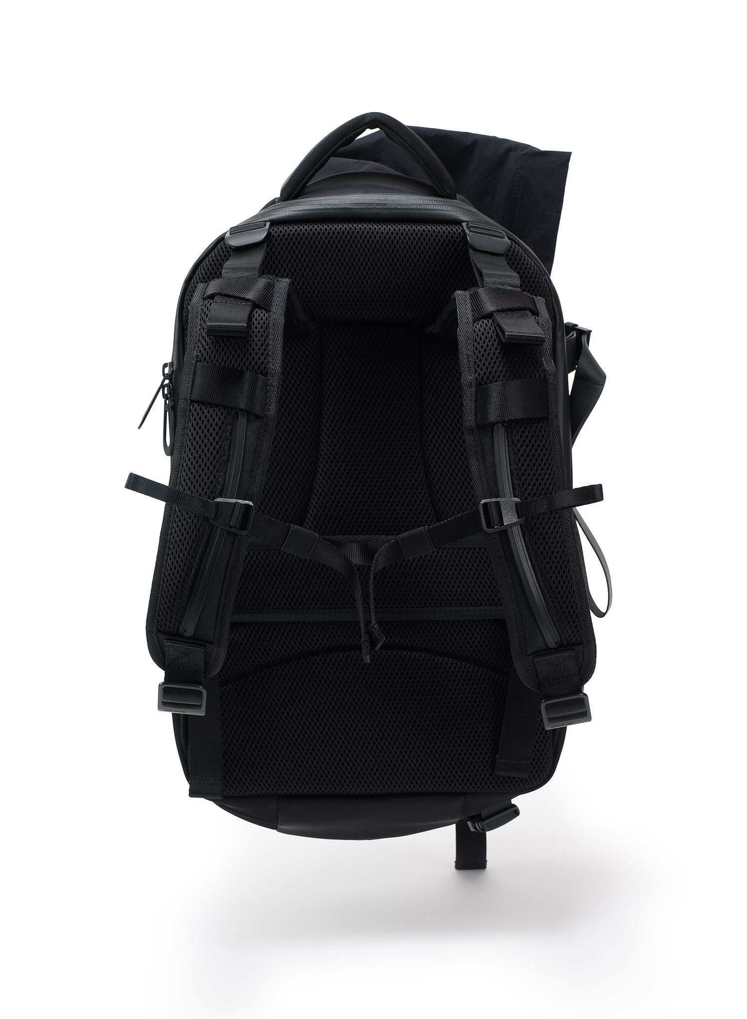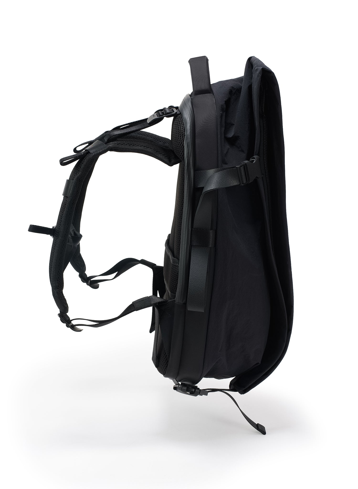 季節感のあるコマツオニベジナイロンバックパック(ブラック)は建築的な曲線美を活かした独特なフォルム、アシンメトリーな形は実用的な二つのコンパートメントで作られています。