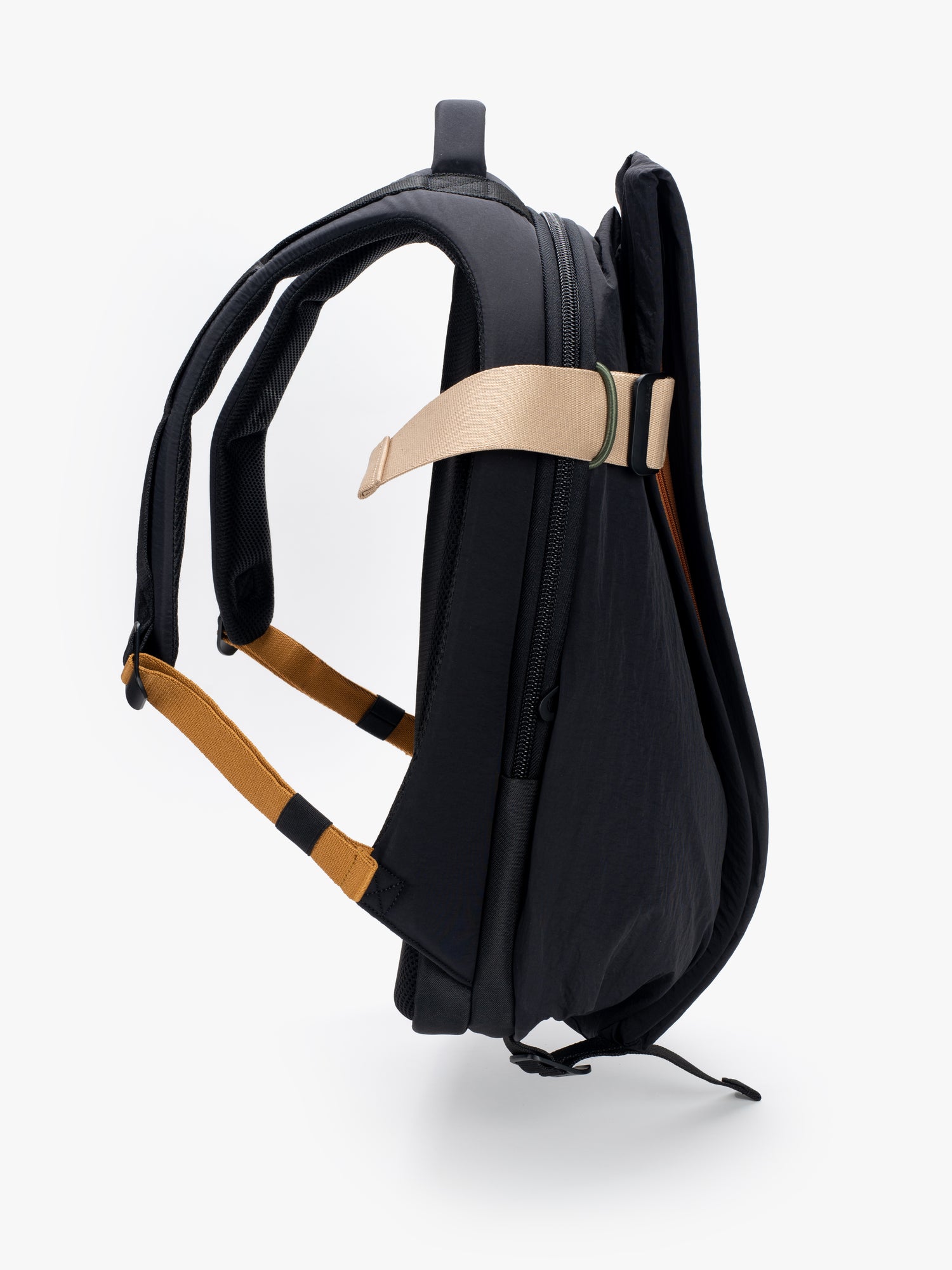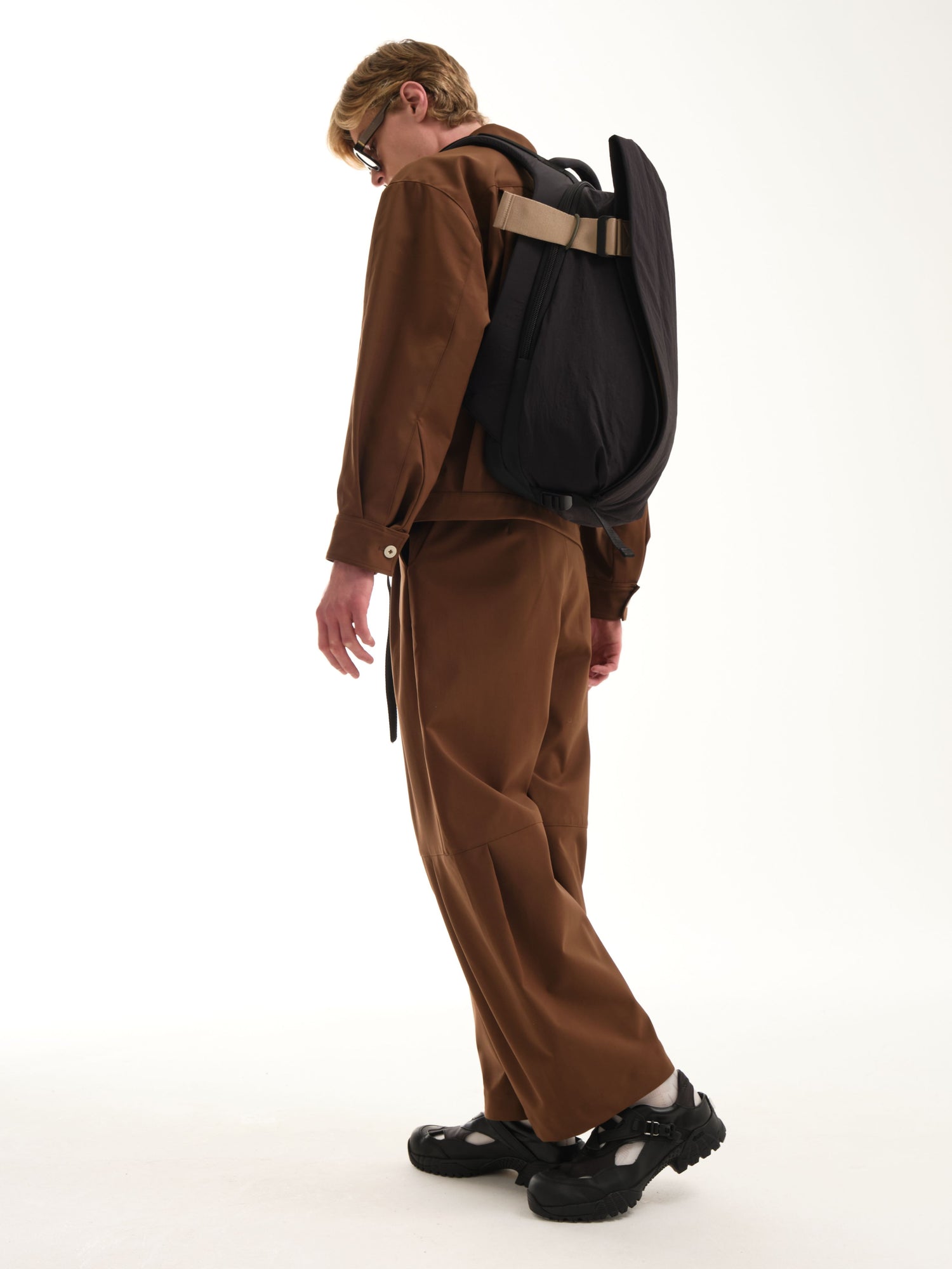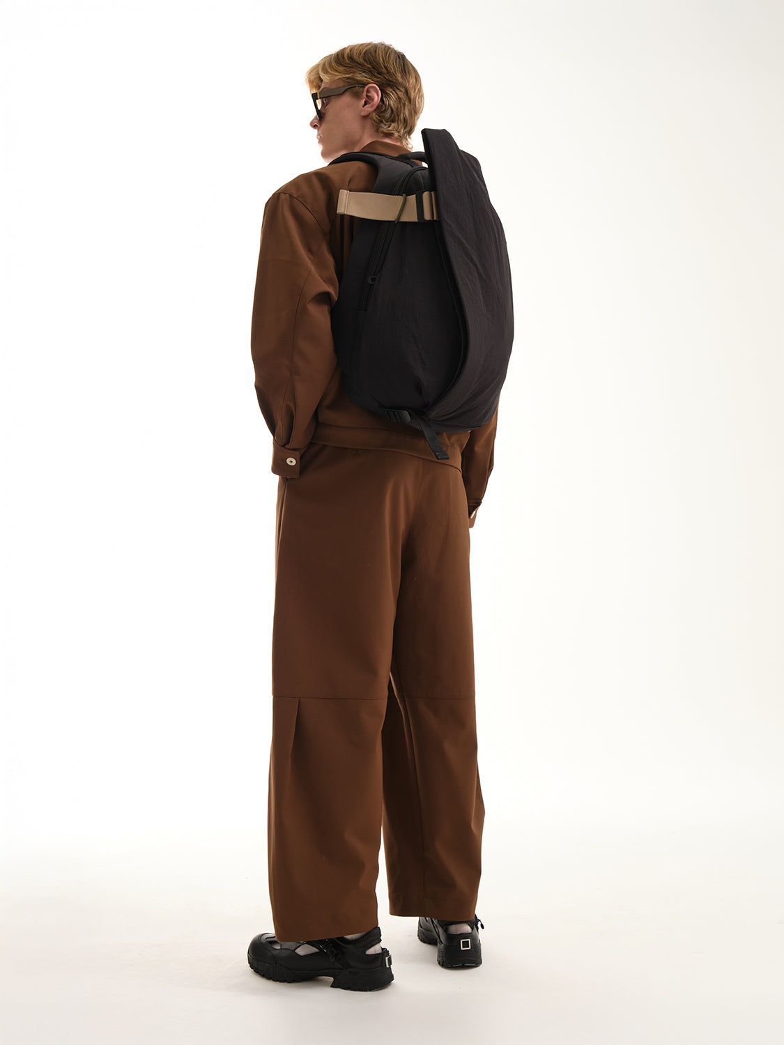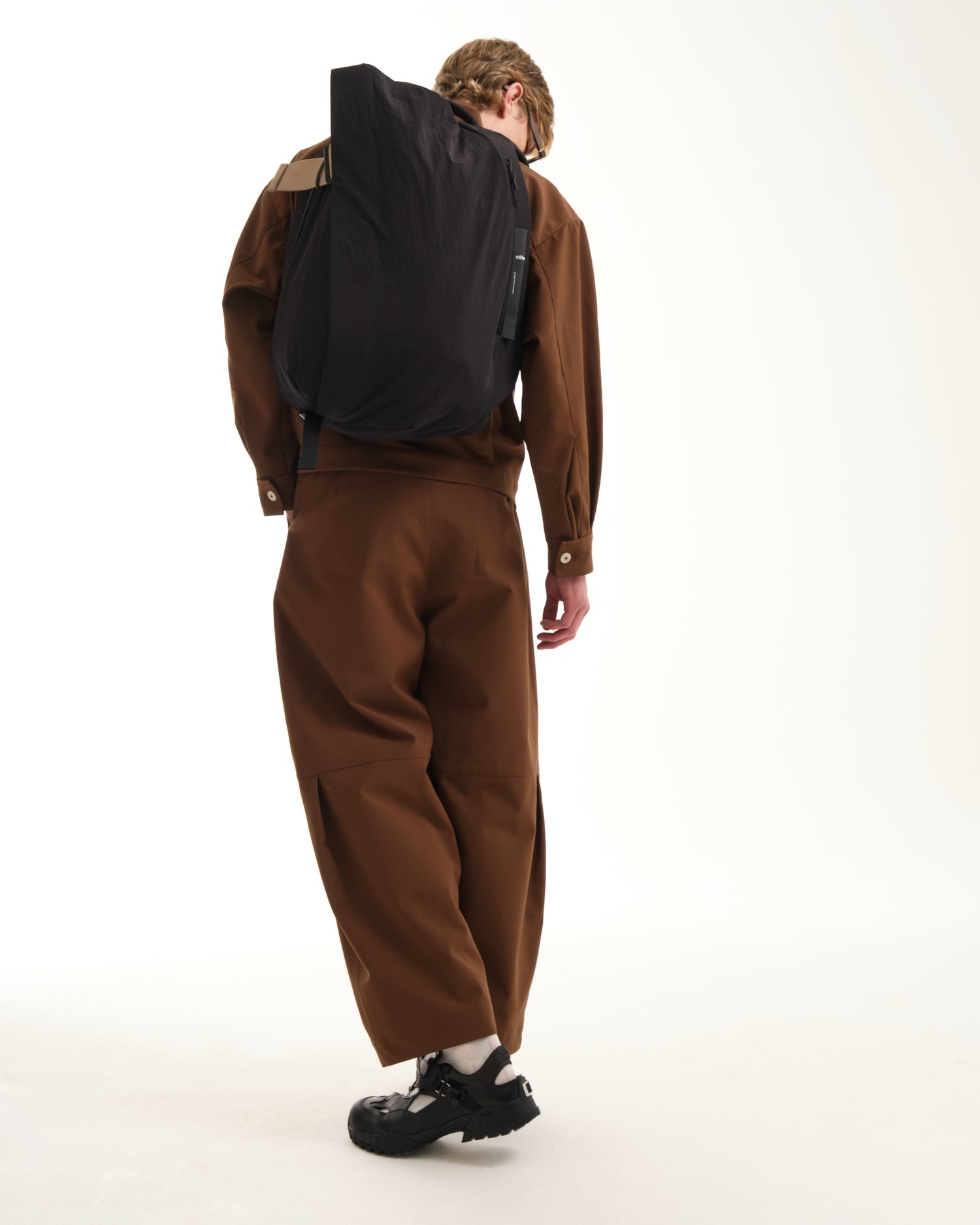本体には「スムースブラック」生地を使用。外部のアジャスターはISAR Mのボリュームと連動し、荷重に応じて膨張したり圧縮したりします。また、人間工学に基づいた形状のバックパネルを備えています。