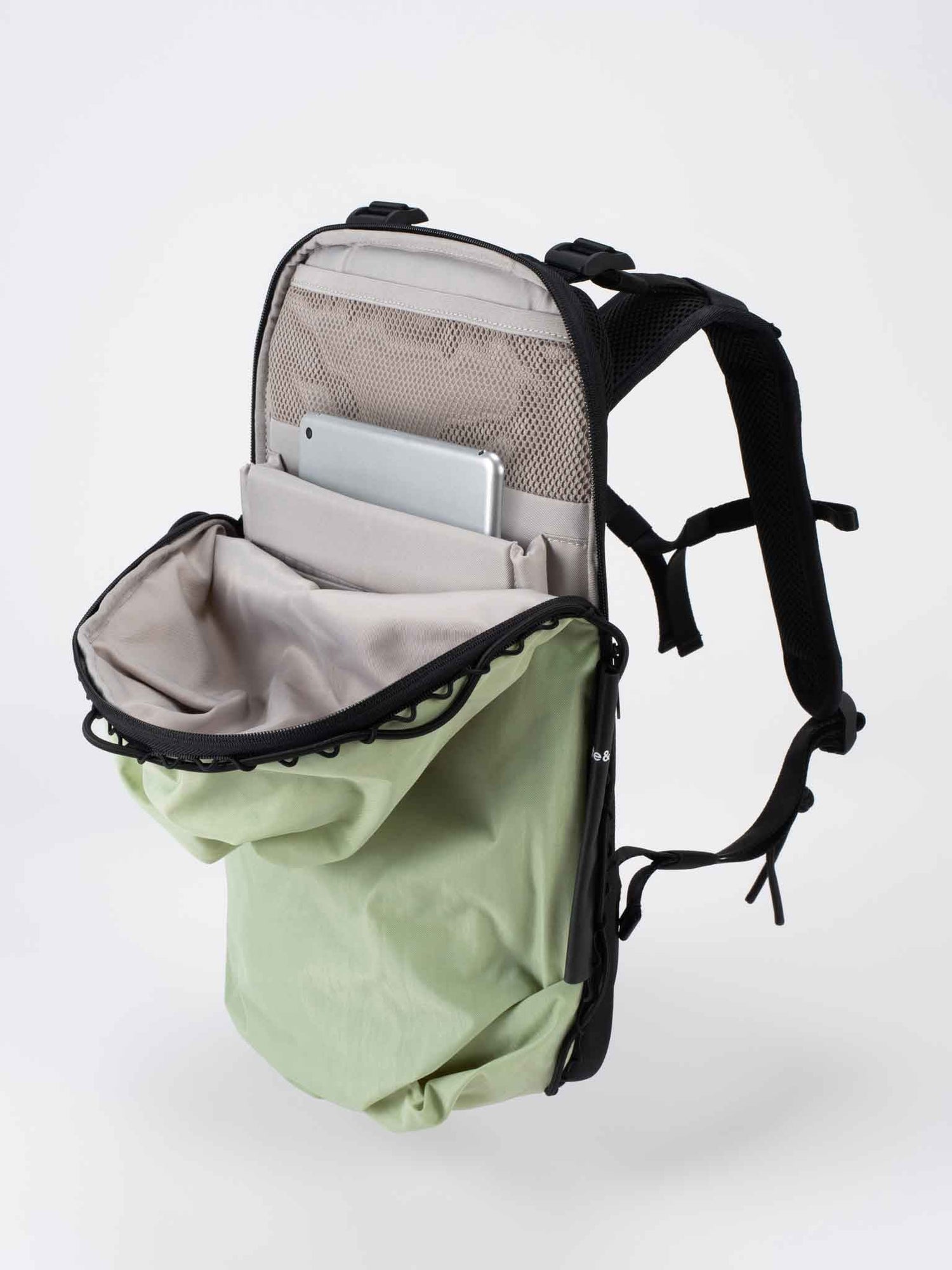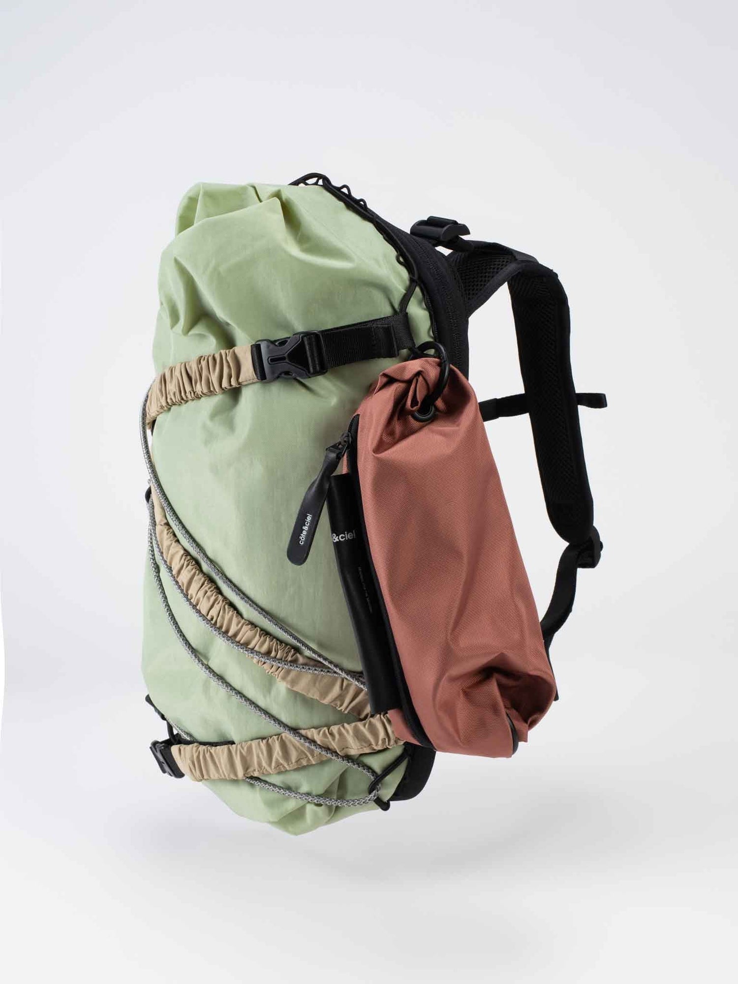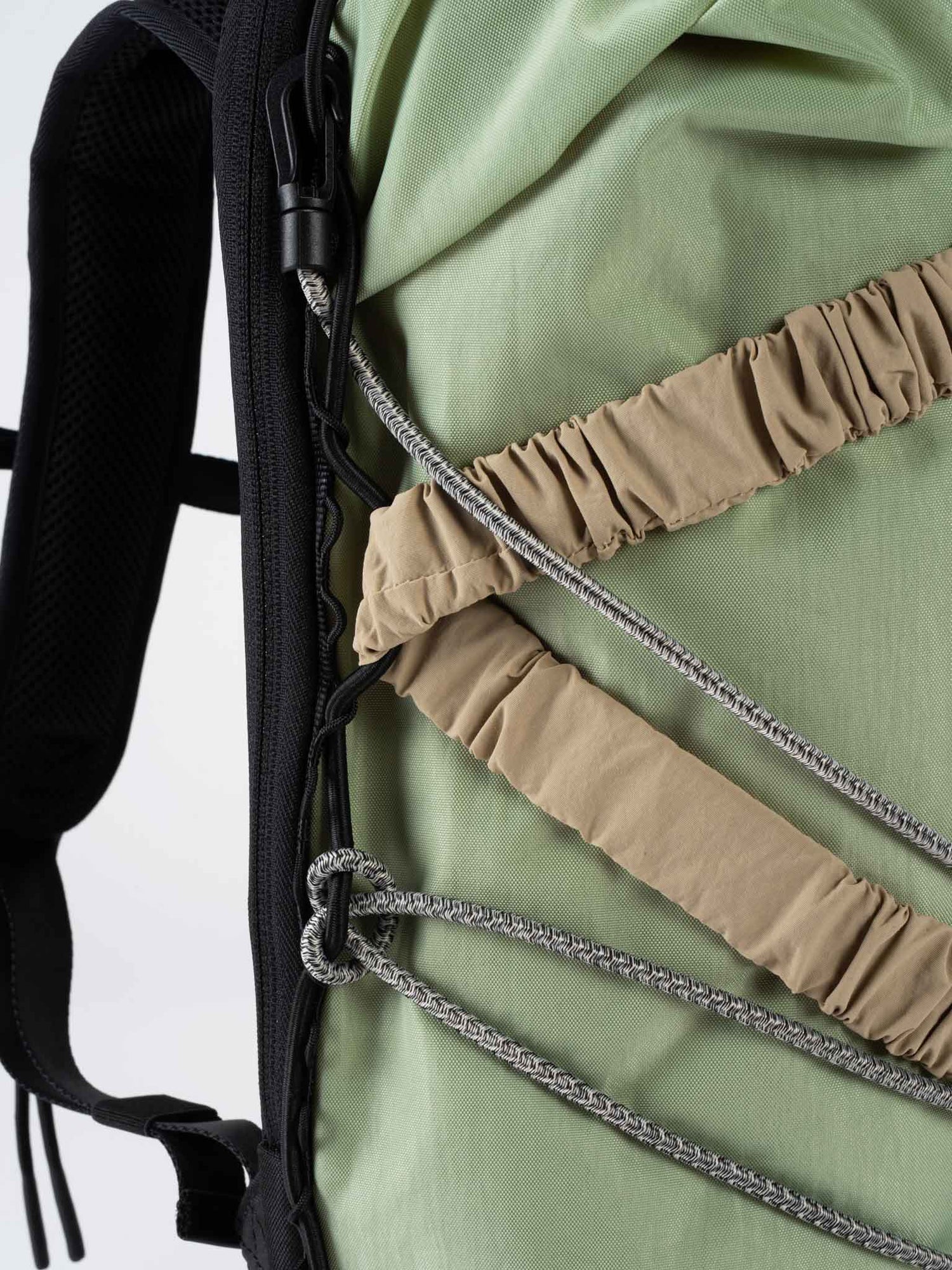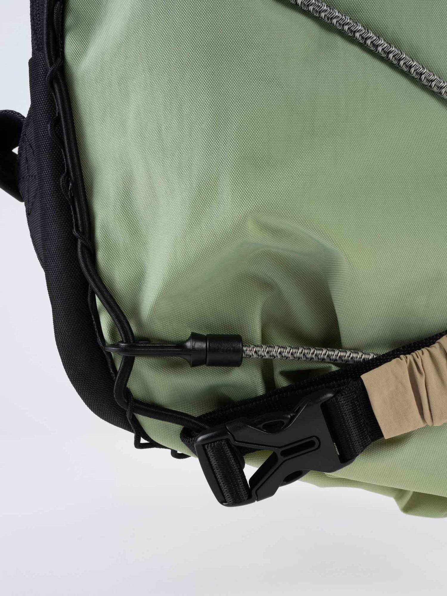 外側のウェビングストラップやコードと組み合わせることで、Ladon の外観は セキセイインコグリーンの生地によりさらに際立っています。