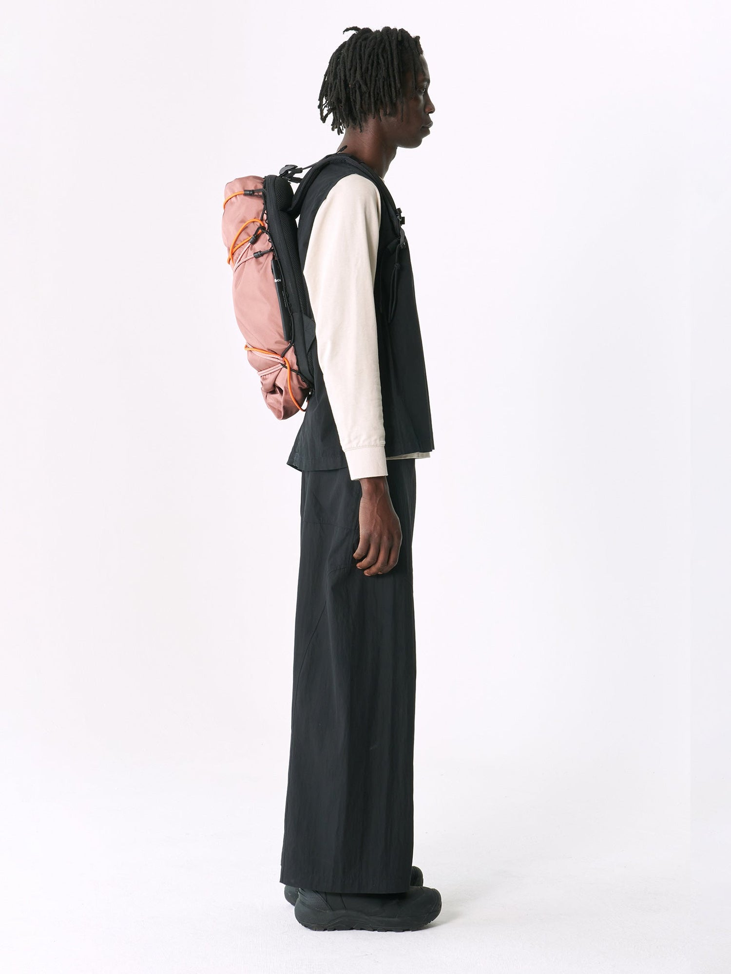魅惑的な LADON バックパックのシルエットは、生地との遊び心のある相互作用により、シェイプの両端にある 2 つの二重渦巻きが際立っています。