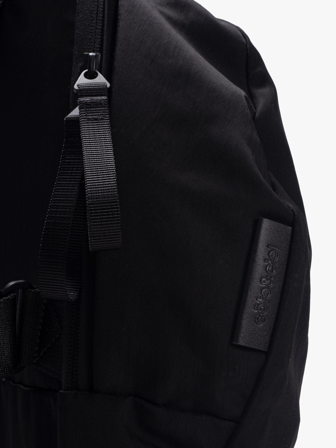撥水性があり、ソフトな手触りでセミマットな仕上がりのスムースブラックナイロン生地を使用しています。