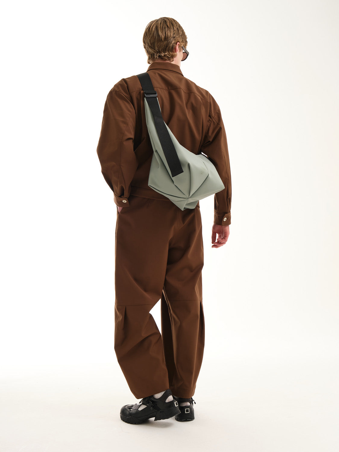 NI は、機能性とユニークなデザインの両方を求める人のためにデザインされた新しいミディアム クロスボディ バッグです。折り紙からインスピレーションを得たその印象的な形状は、実用性と現代的な美学を融合させた彫刻的なシルエットを作り出しています。