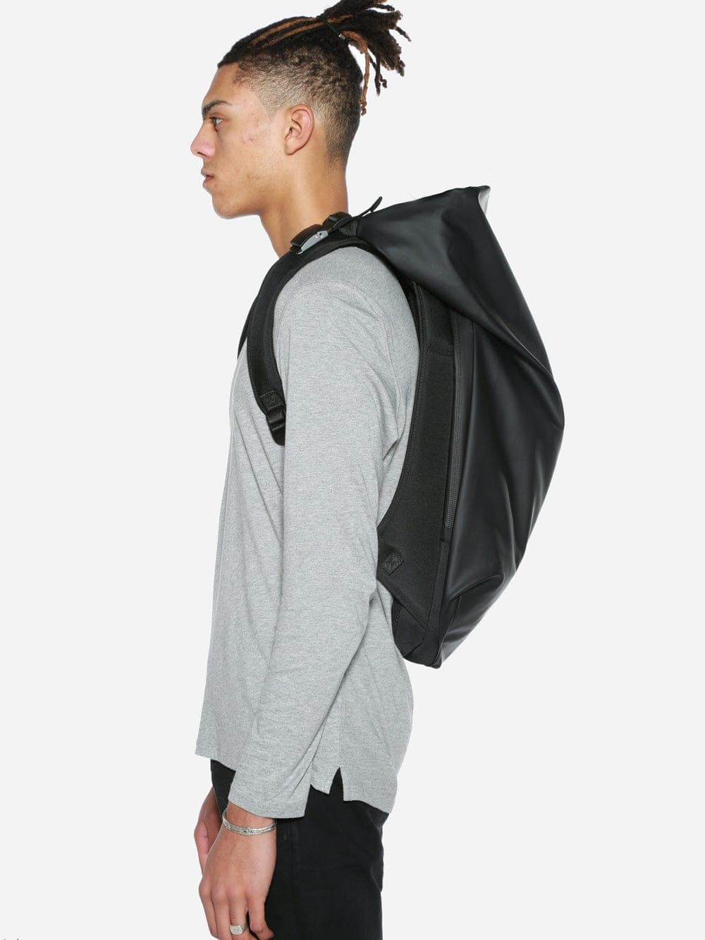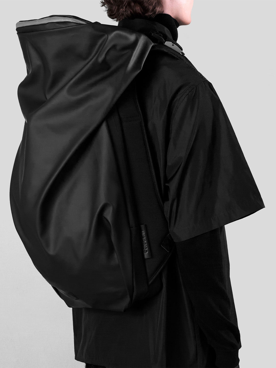 生地には防水コーティングを施したポリエステル素材「Obsidian」を使用し、収納の開閉部には止水ジッパーを採用しています。