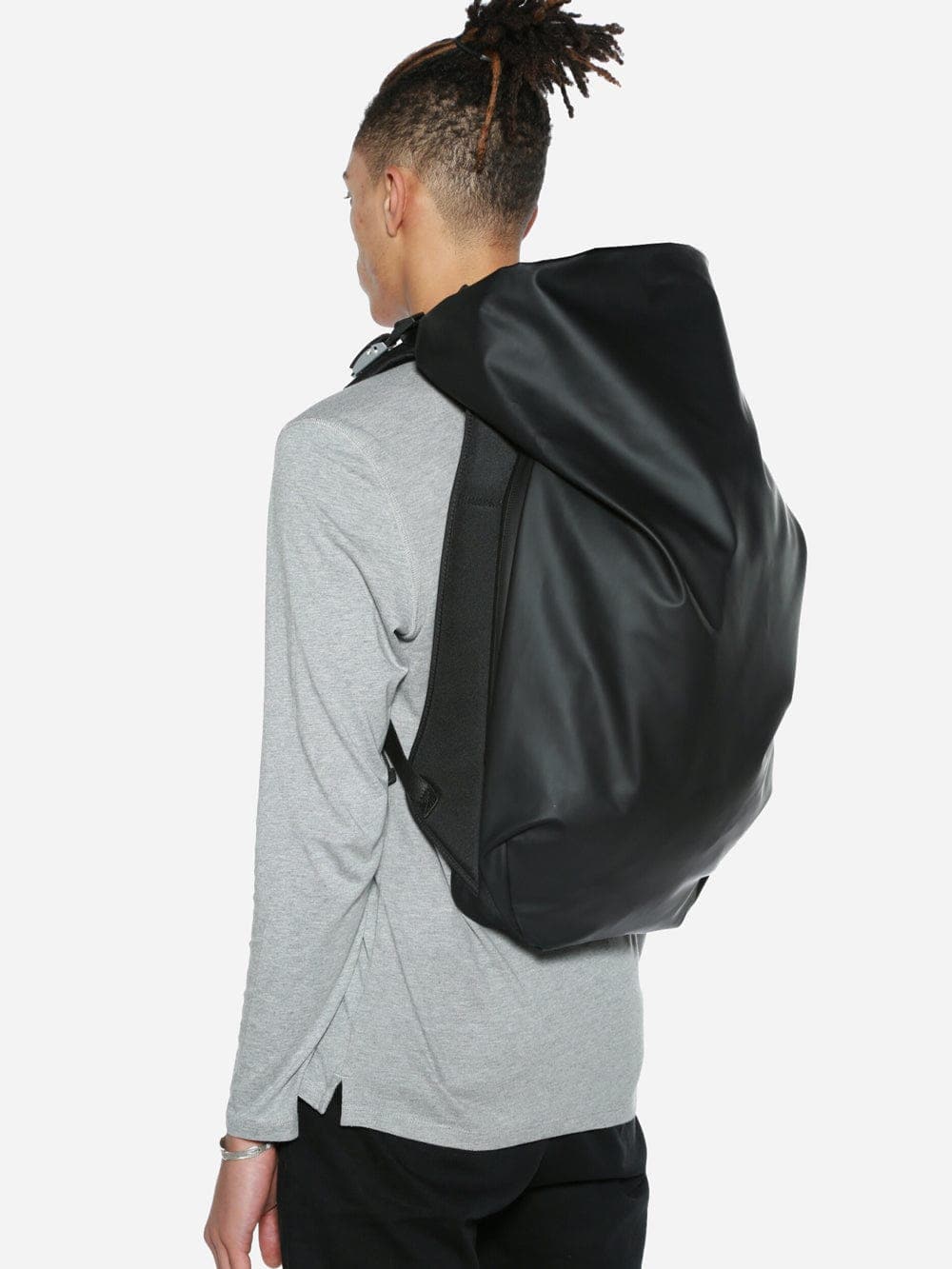 収納はメイン収納とラップトップ収納の2つに分けられ、トップのジッパーからアクセスするメイン収納は、袋状の大きな空間になっており一泊から二泊ほどの荷物も収納できる大容量。
