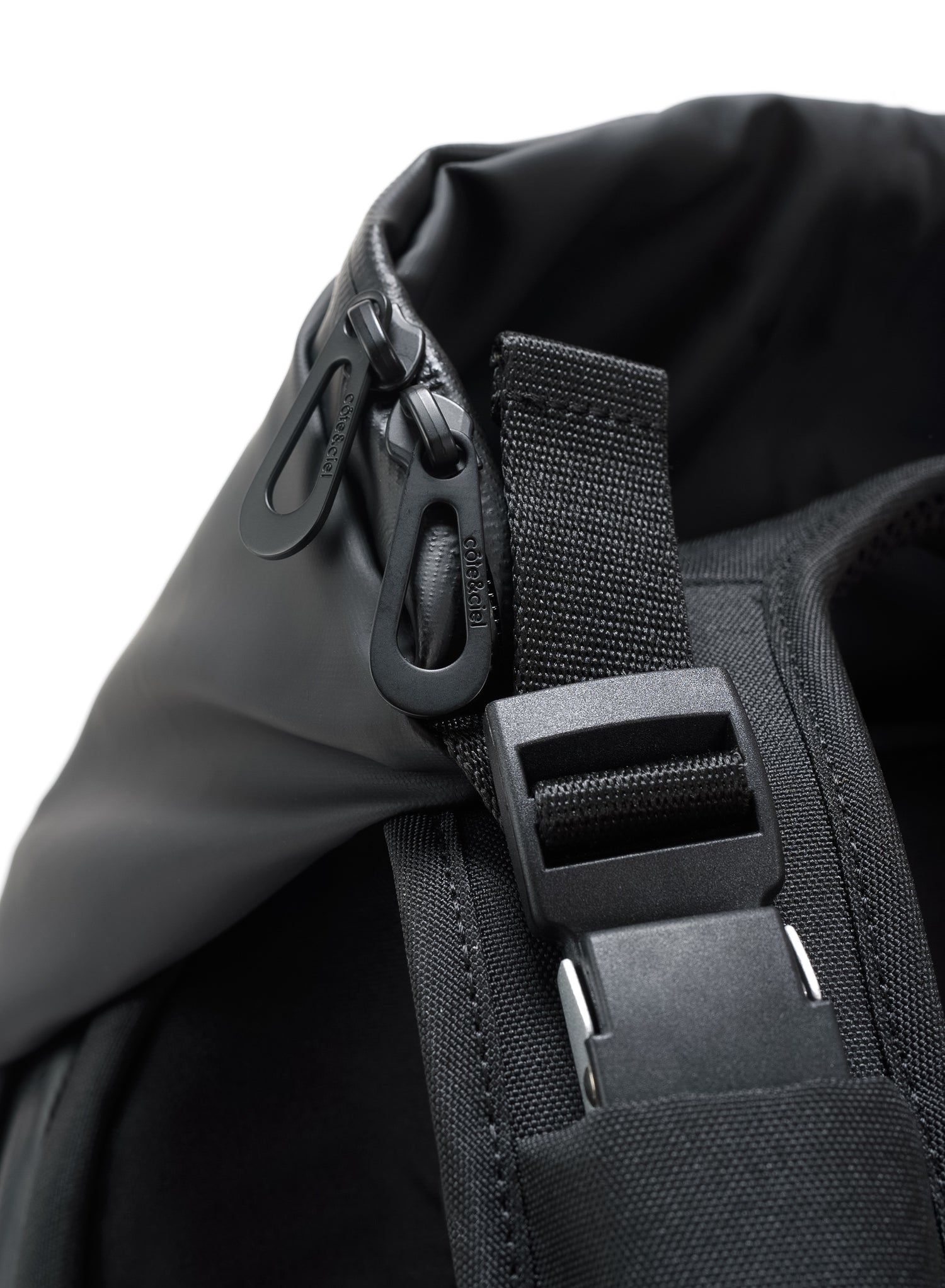 メイン収納は撥水加工が施されたポリエステル生地と止水ジッパーによって守られた大空間となっており、荷物の量に合わせて生き物のようにシルエットとシワ感をかえる構造が魅力です。