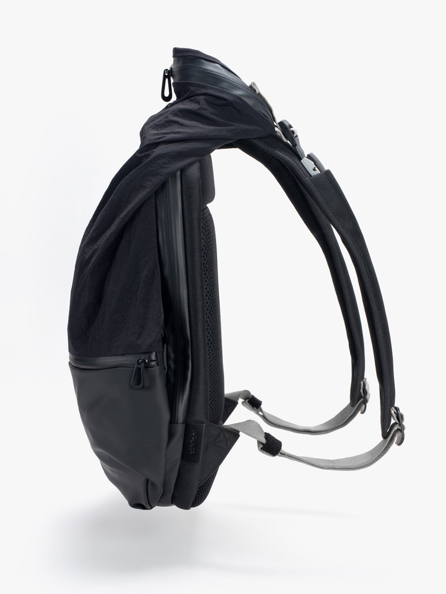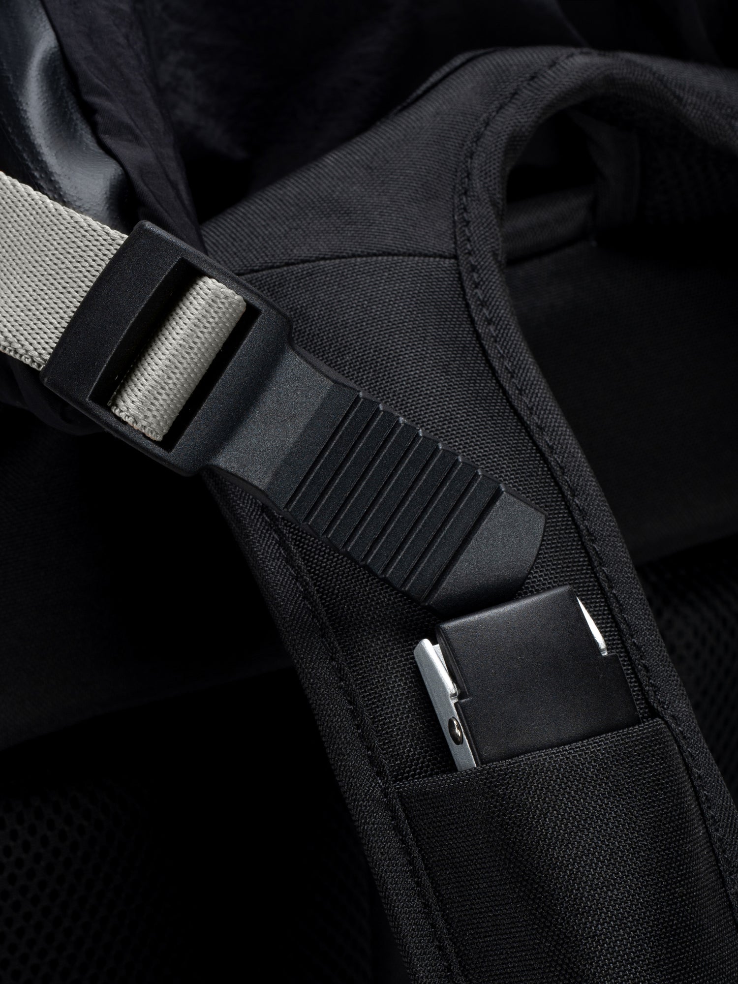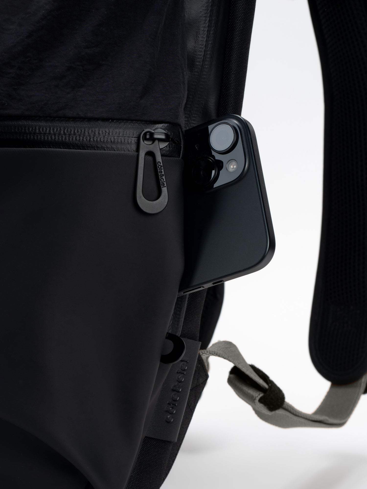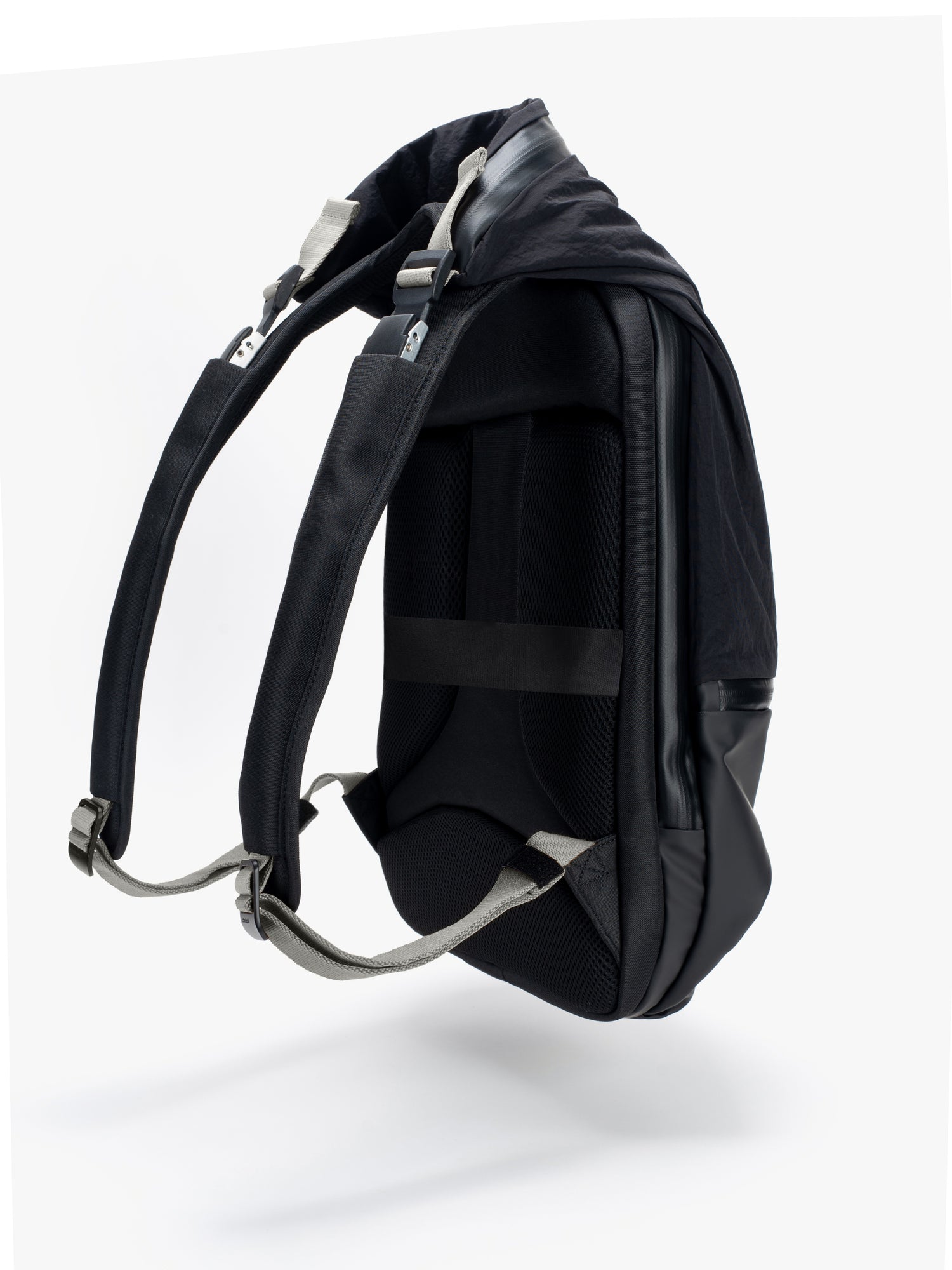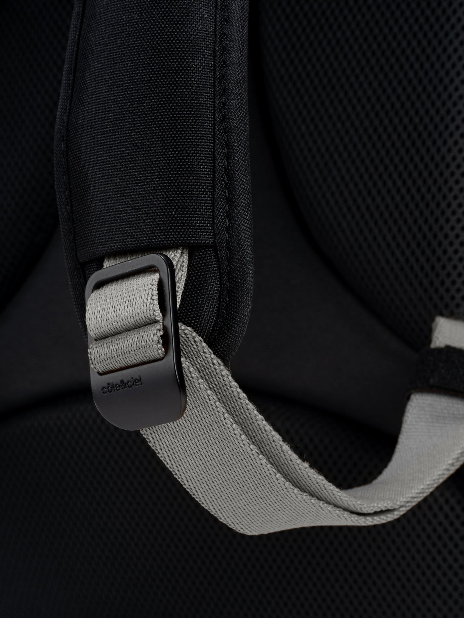 本体は、「スムース ブラック」とオブシディアンの生地を使用しており、通気性のあるメッシュ裏地のストラップと人間工学に基づいたバックパネルによって補完されています。