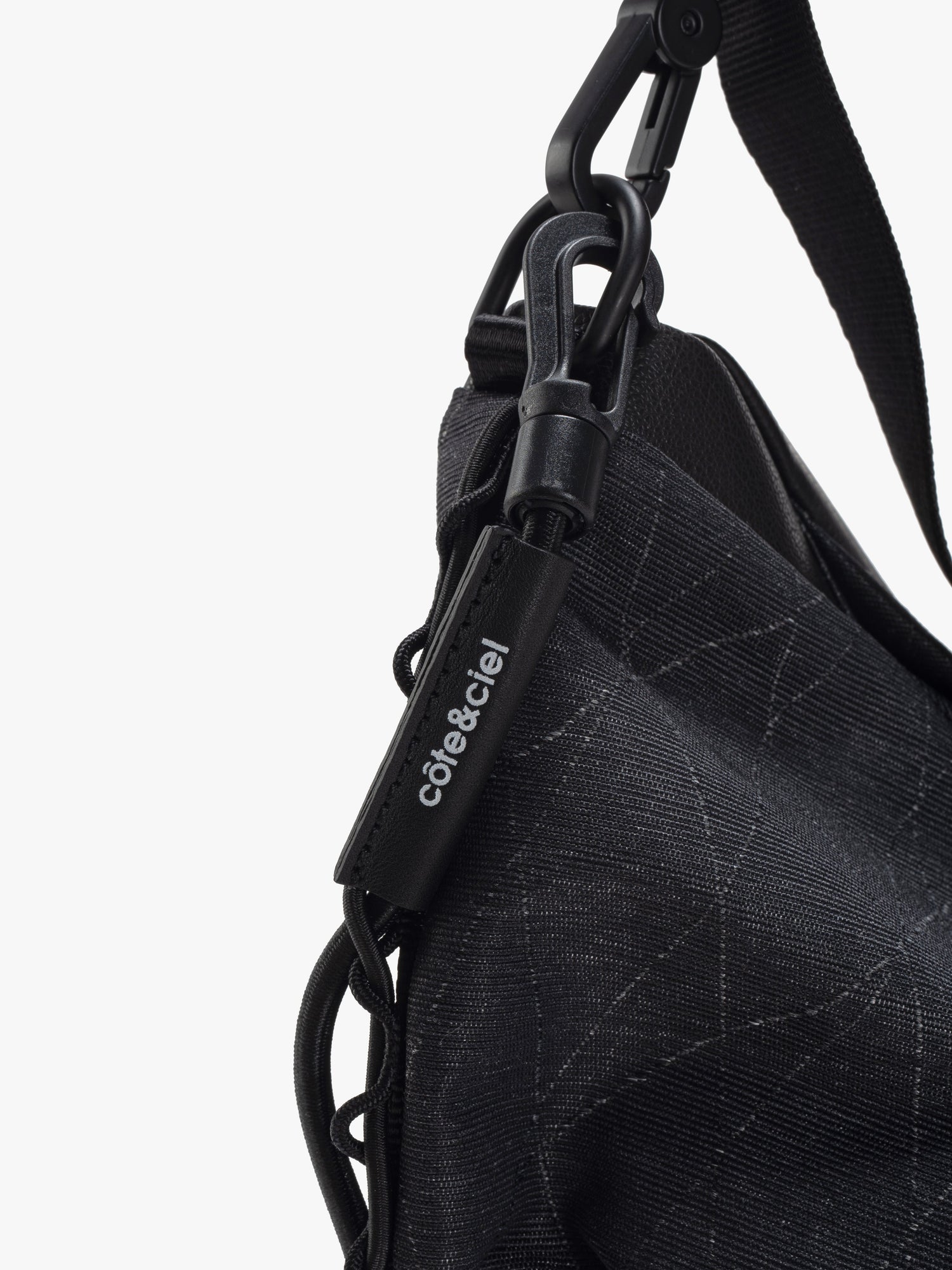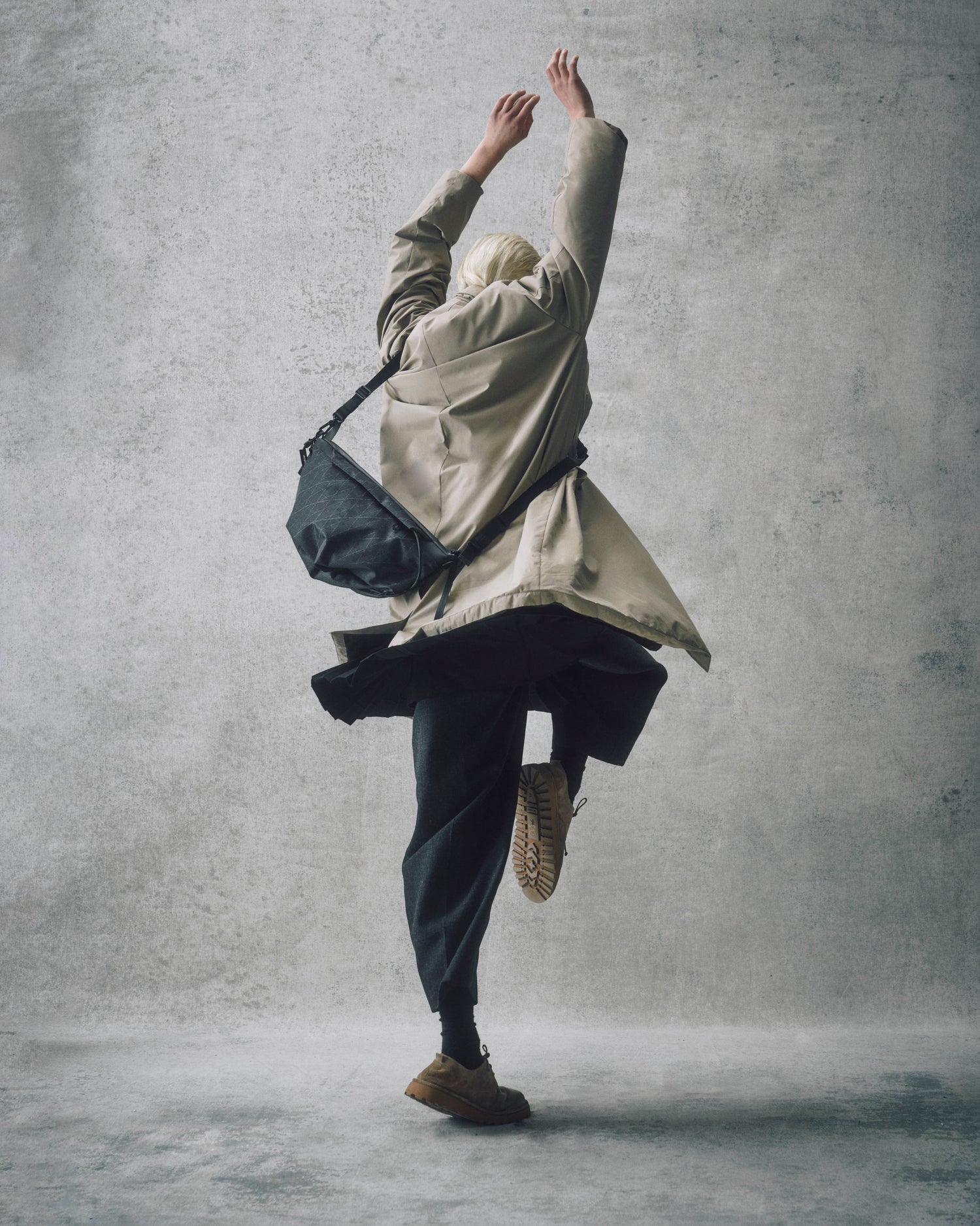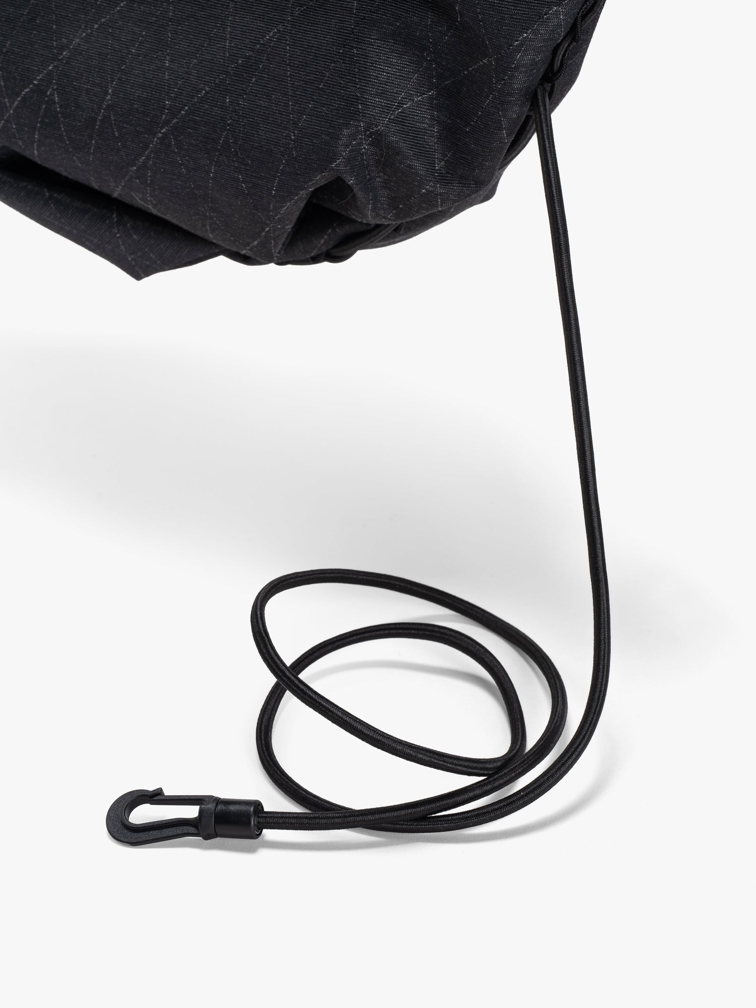 ORNEにはメインコンパートメントが1つと、内部にセキュリティポケットが付いています。外側にはリサイクルレザーをアクセントにした外ポケットがあり、バッグ周囲に着くゴム紐はキーホルダーとしても使用可能です。