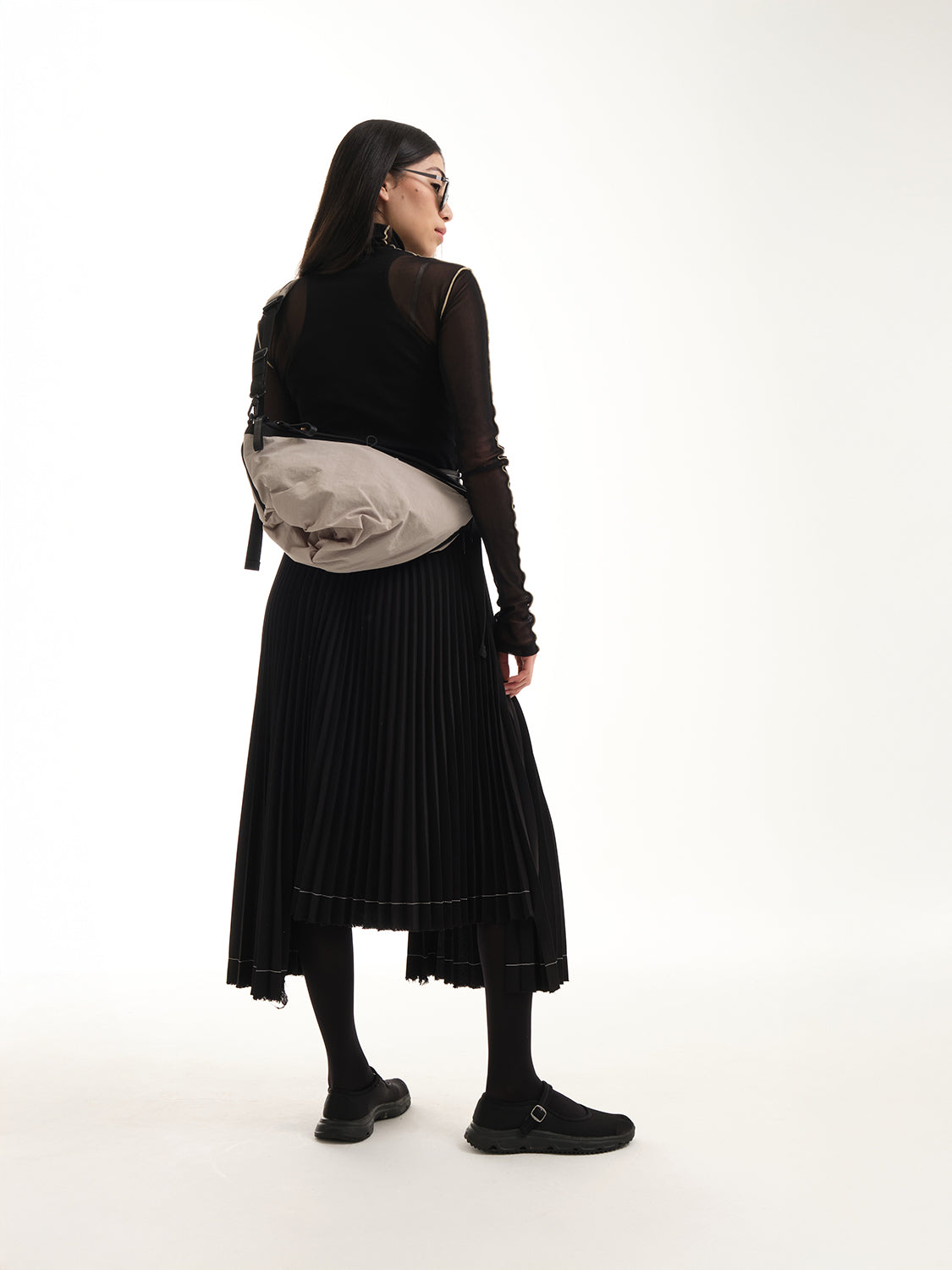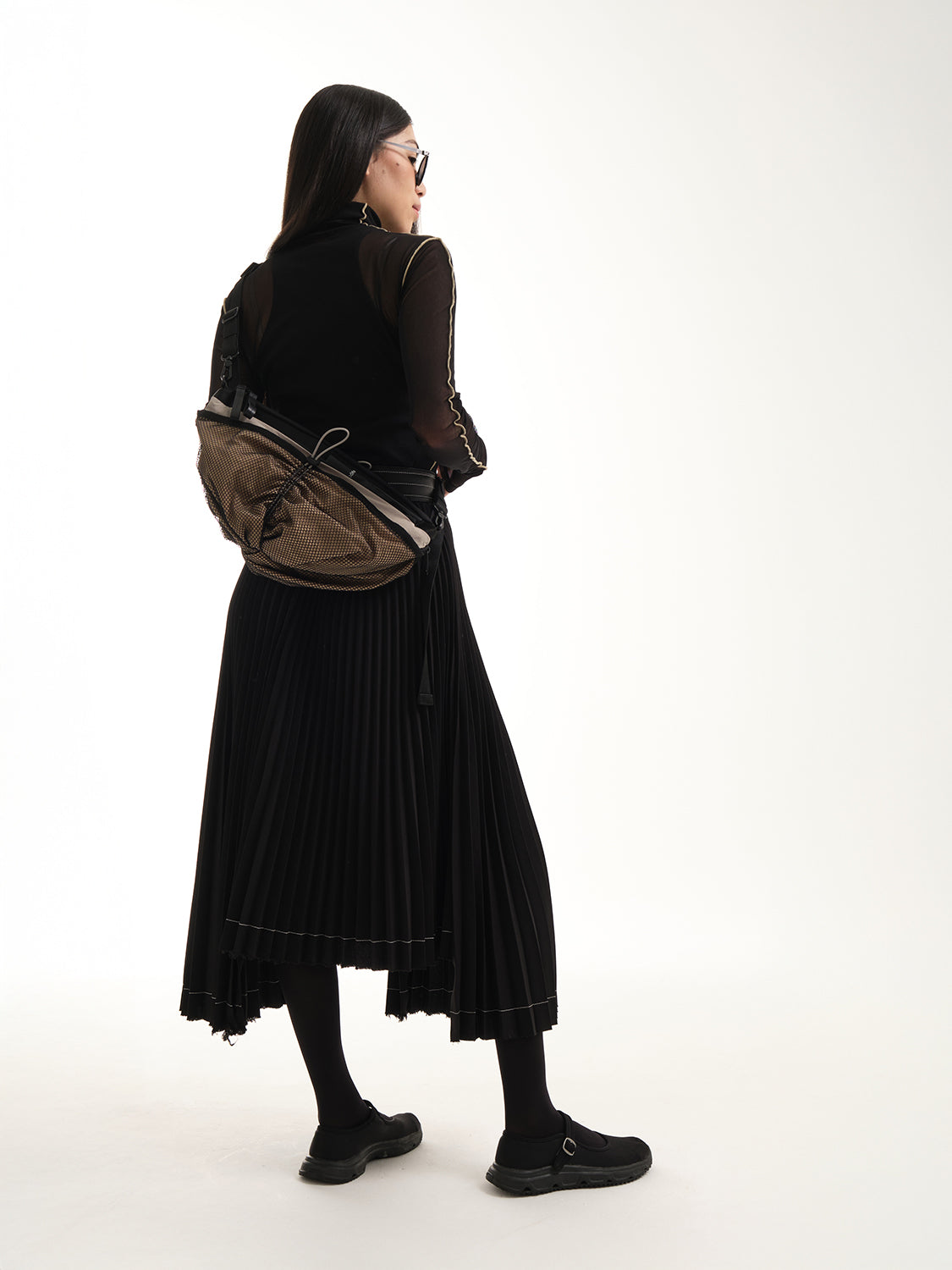 ORNE は、ユーザーのシルエットに相互作用するように設計されています。バッグ底部の素材に遊び心のあるひねりを加え、動きのある印象に仕上げました。バッグが変形してサンド・カラーのメッシュ・オプションが現れると、生地に面白いひだができ、アクセントになります。