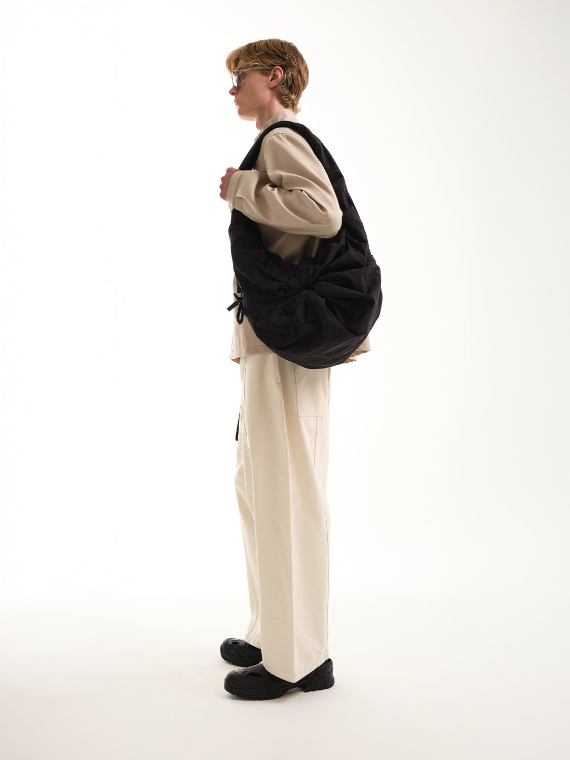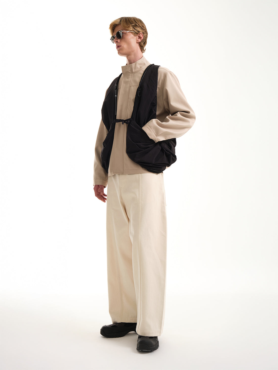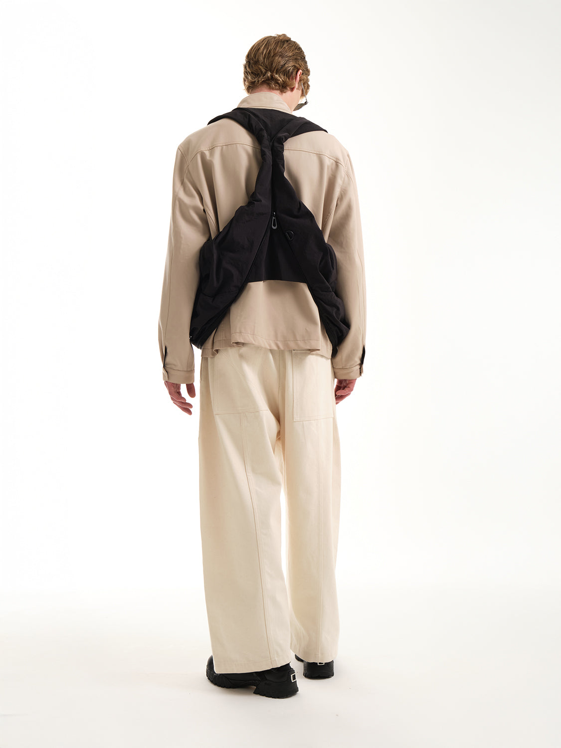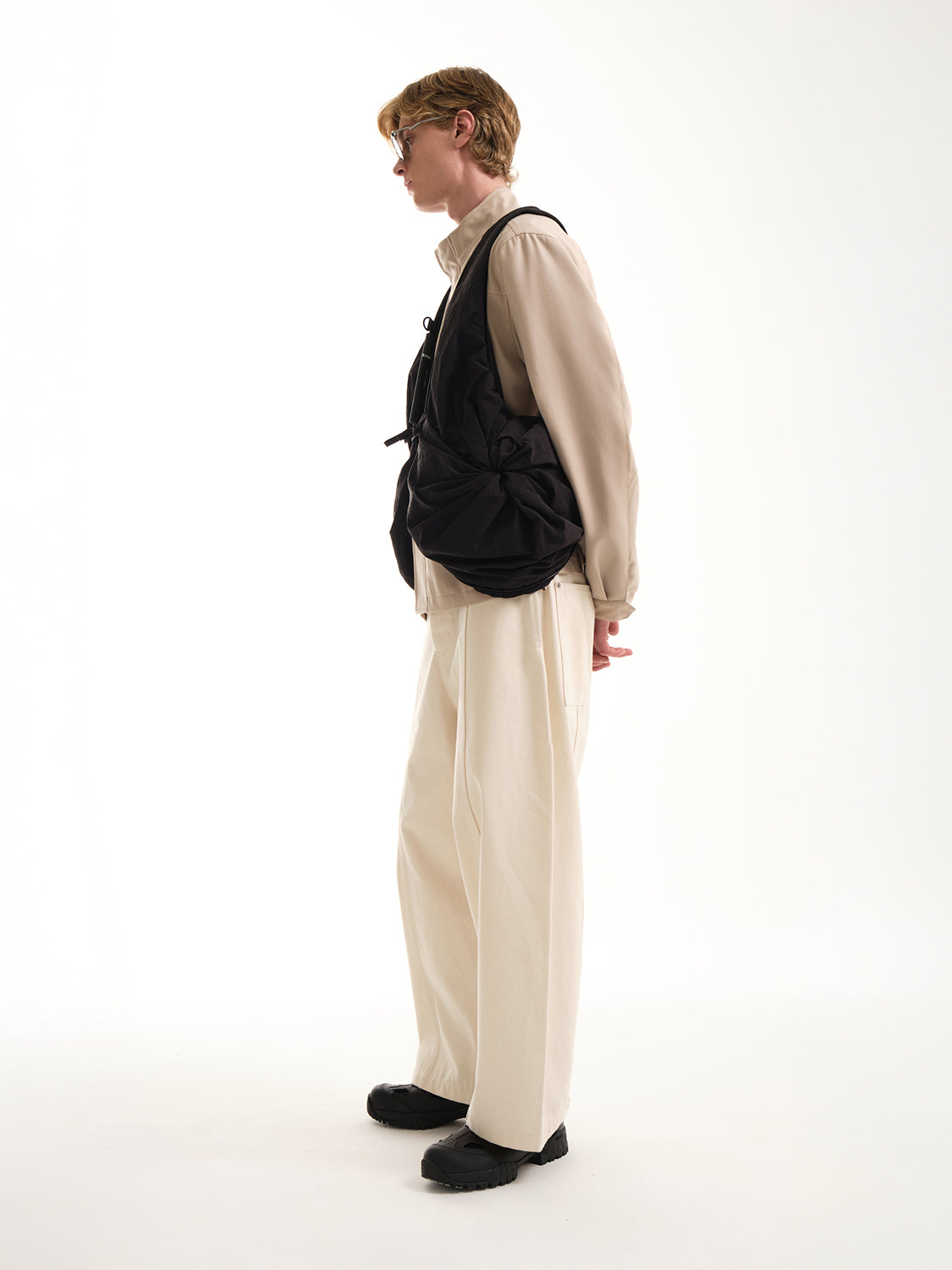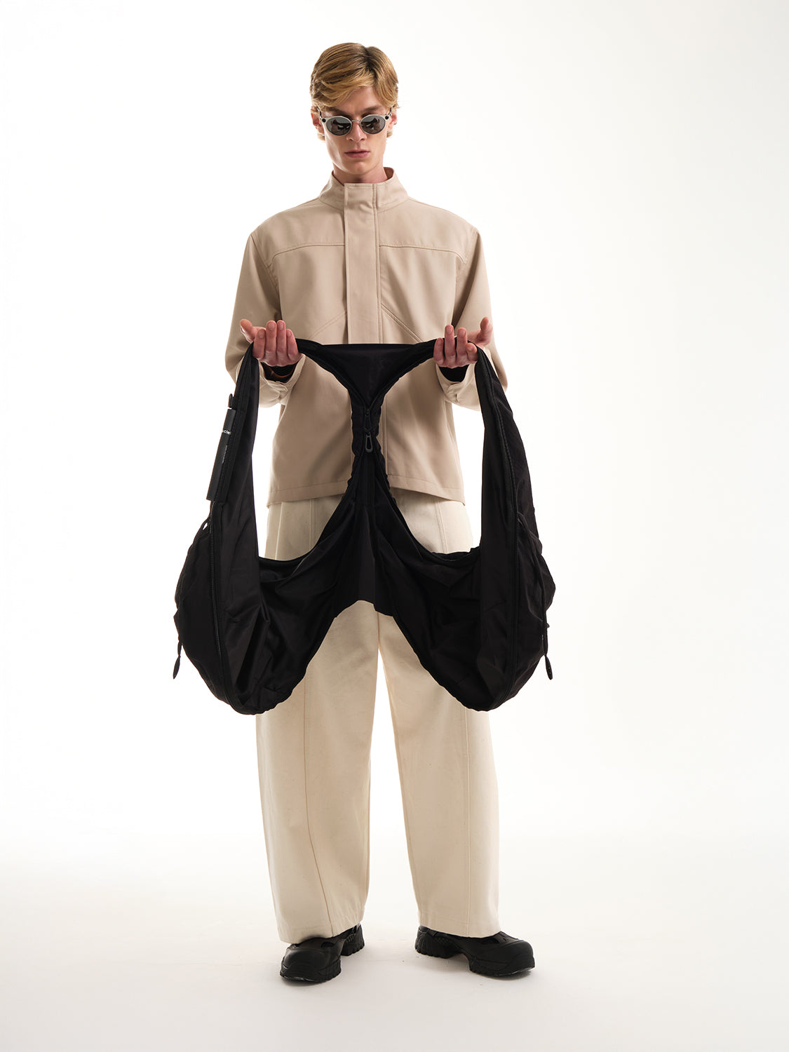 「スムースブラック」ナイロンを使用したPOは、côte&cielの「持ち歩くものではなく、着るバッグ」というモットーを体現しており、瞬時にウェアラブルなジレに変身できるハイブリッドなトートバッグです。