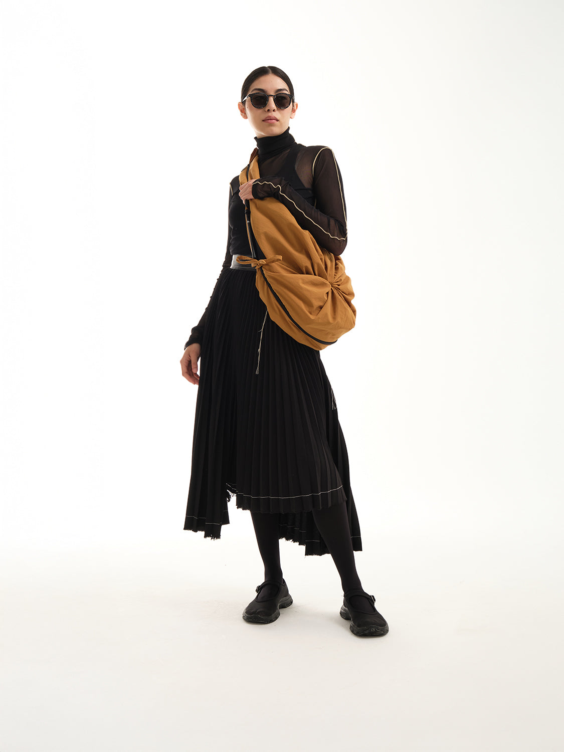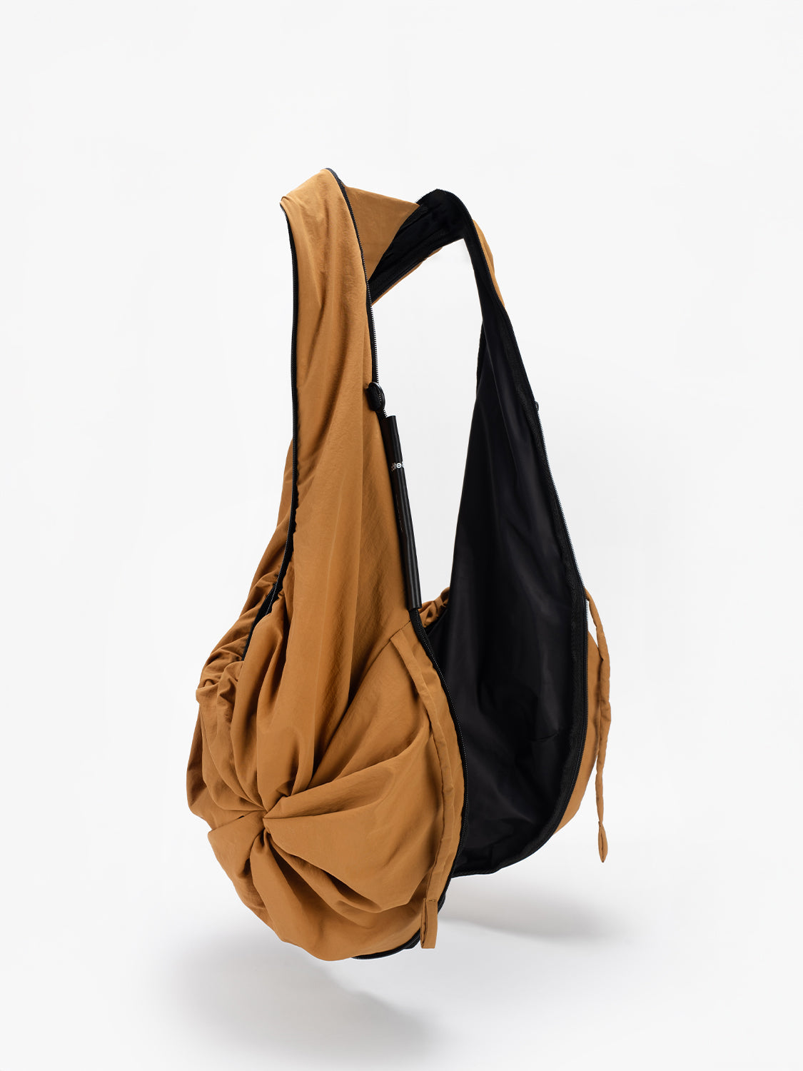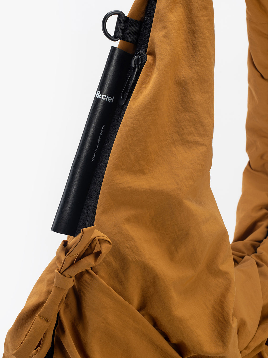 「スムースサンレイ」ナイロンを使用したPOは、côte&cielの「持ち歩くものではなく、着るバッグ」というモットーを体現しており、瞬時にウェアラブルなジレに変身できるハイブリッドなトートバッグです。中央のジッパーを使用すれば、PO の第 2 形態へ変形できます。