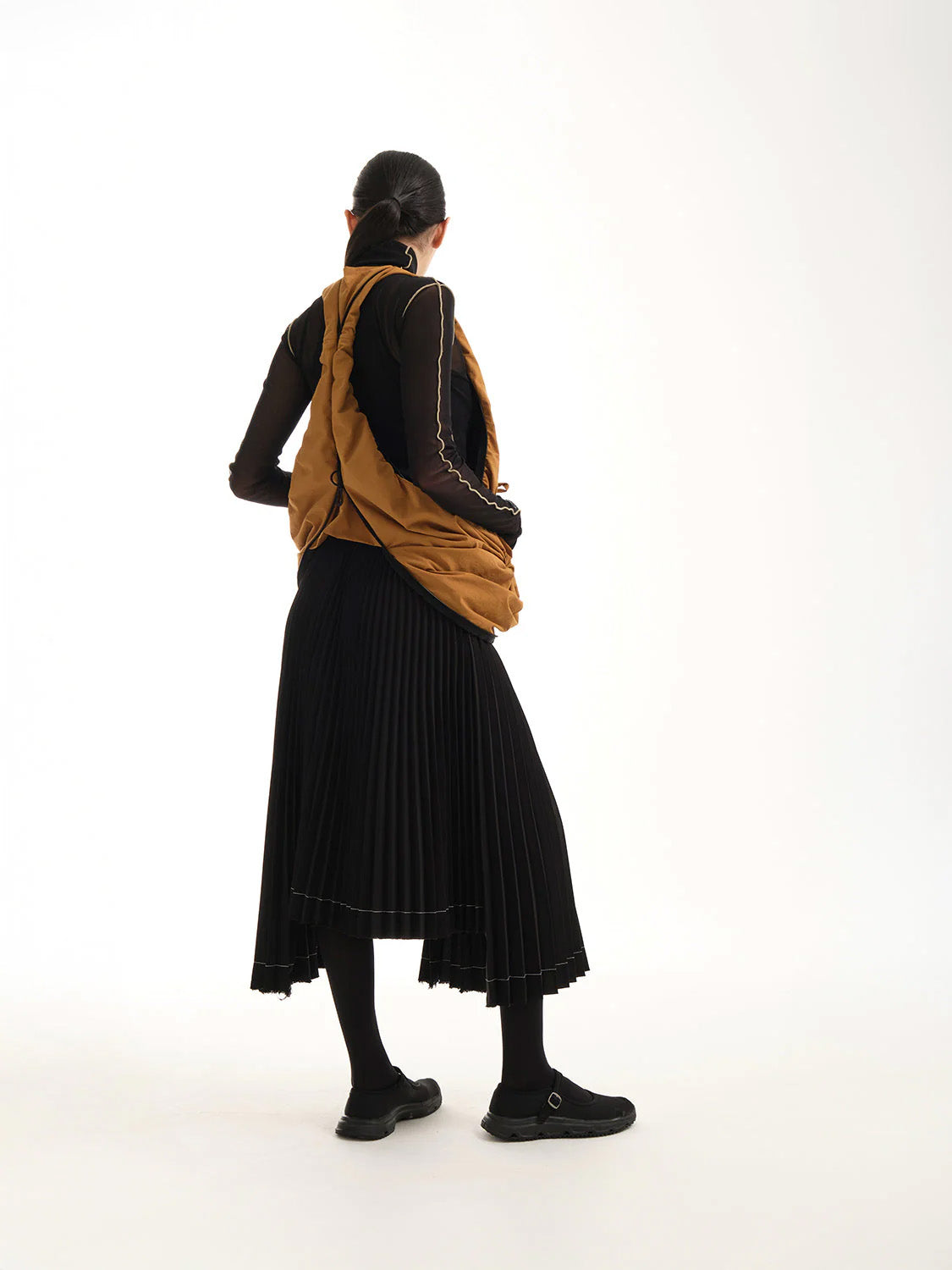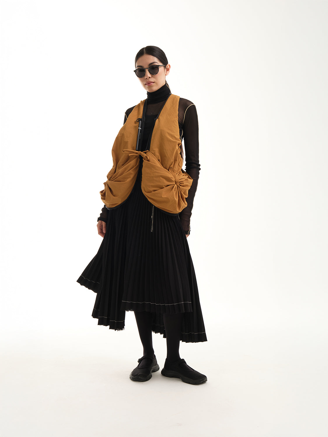 折り紙からインスピレーションを得た原理に従って、POの構造はバッグまたはジレの形で再現された一連の複雑なレイヤーを見せています。外側には、小物を取り付けるための隠しポケットと D リング クリップが装備されています。