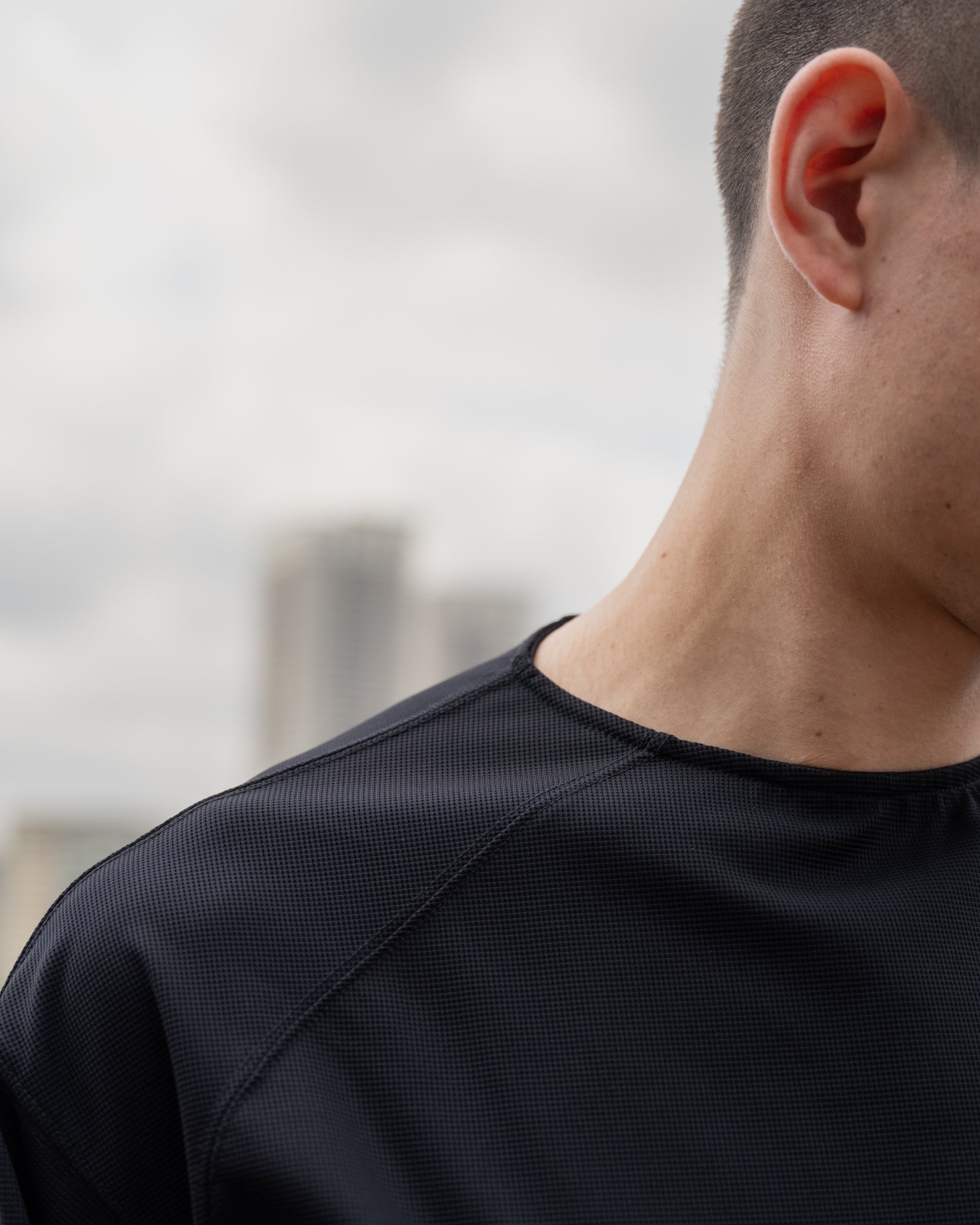 身体を包み込むライニングのように、Radius T-Shirt は着る人の輪郭に寄り添い、自然に形を変えるベースレイヤーです。