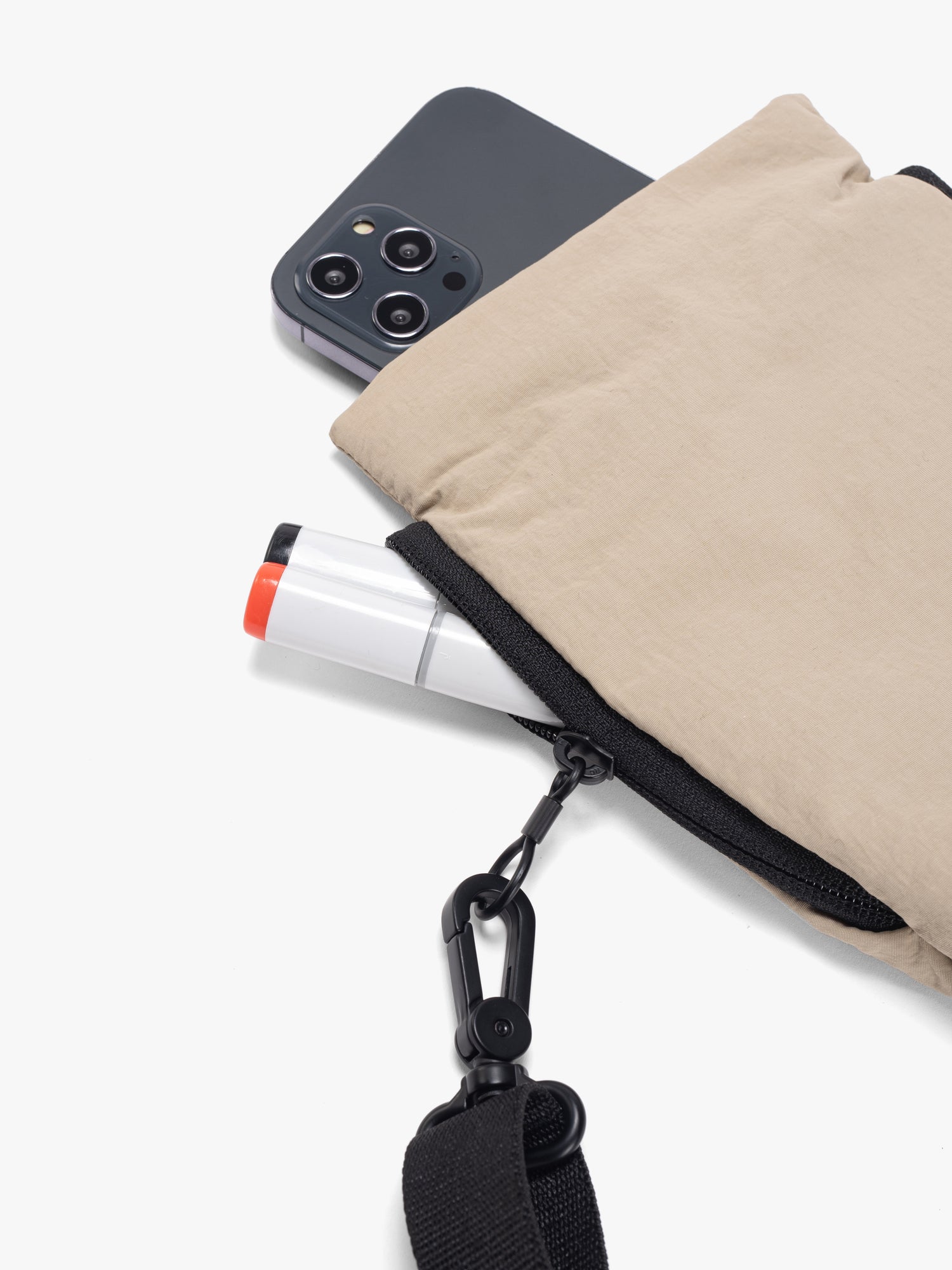 côte&ciel シリーズの新しいシルエットであるTAROはネックポーチに似ており、携帯、鍵、財布、パスポートなどの小さな持ち物を持ち運ぶのに最適です。側面には安全なジッパー開口部があり、上部には簡単にアクセスできるので、物をすぐに入れることができます。