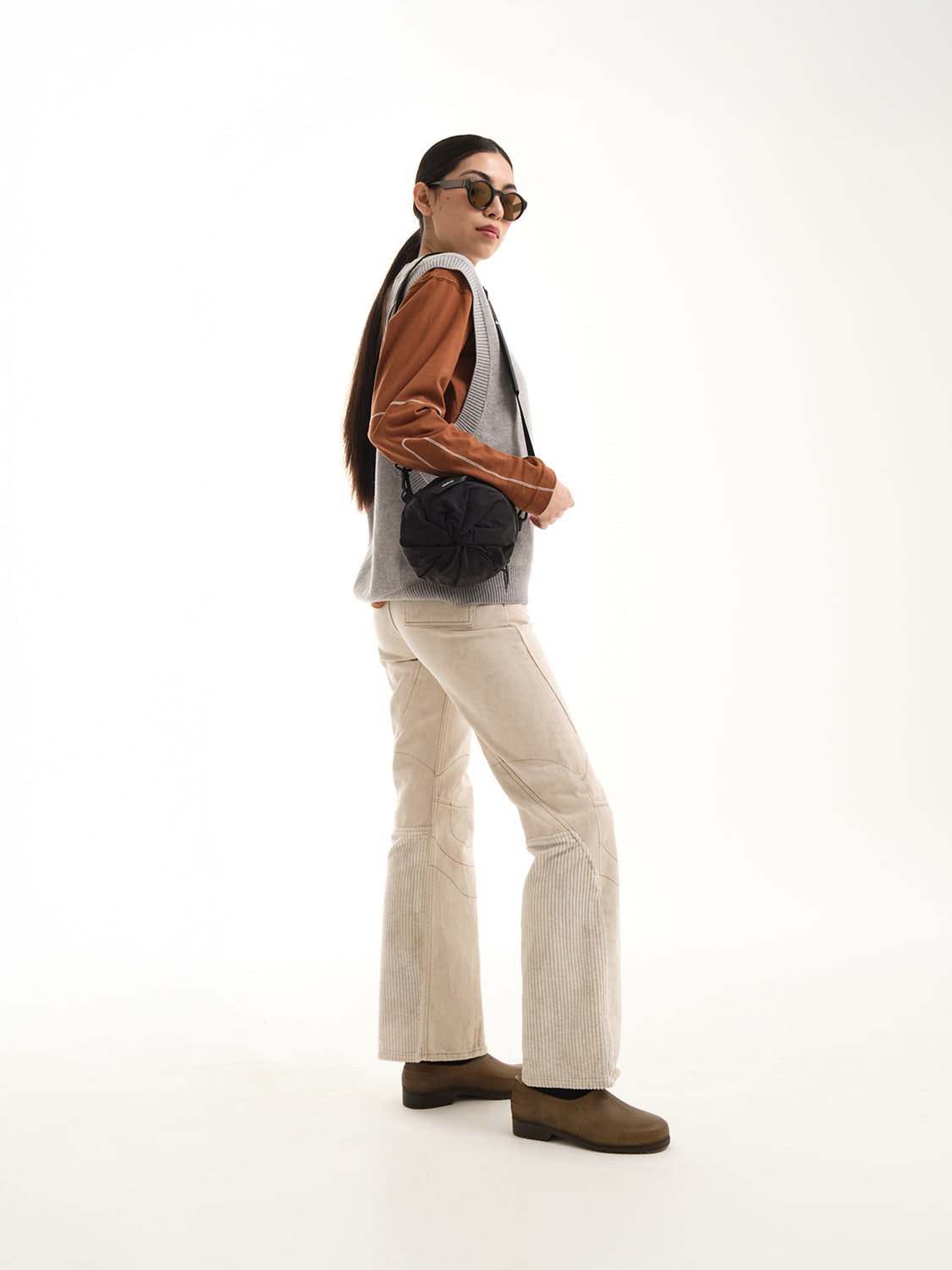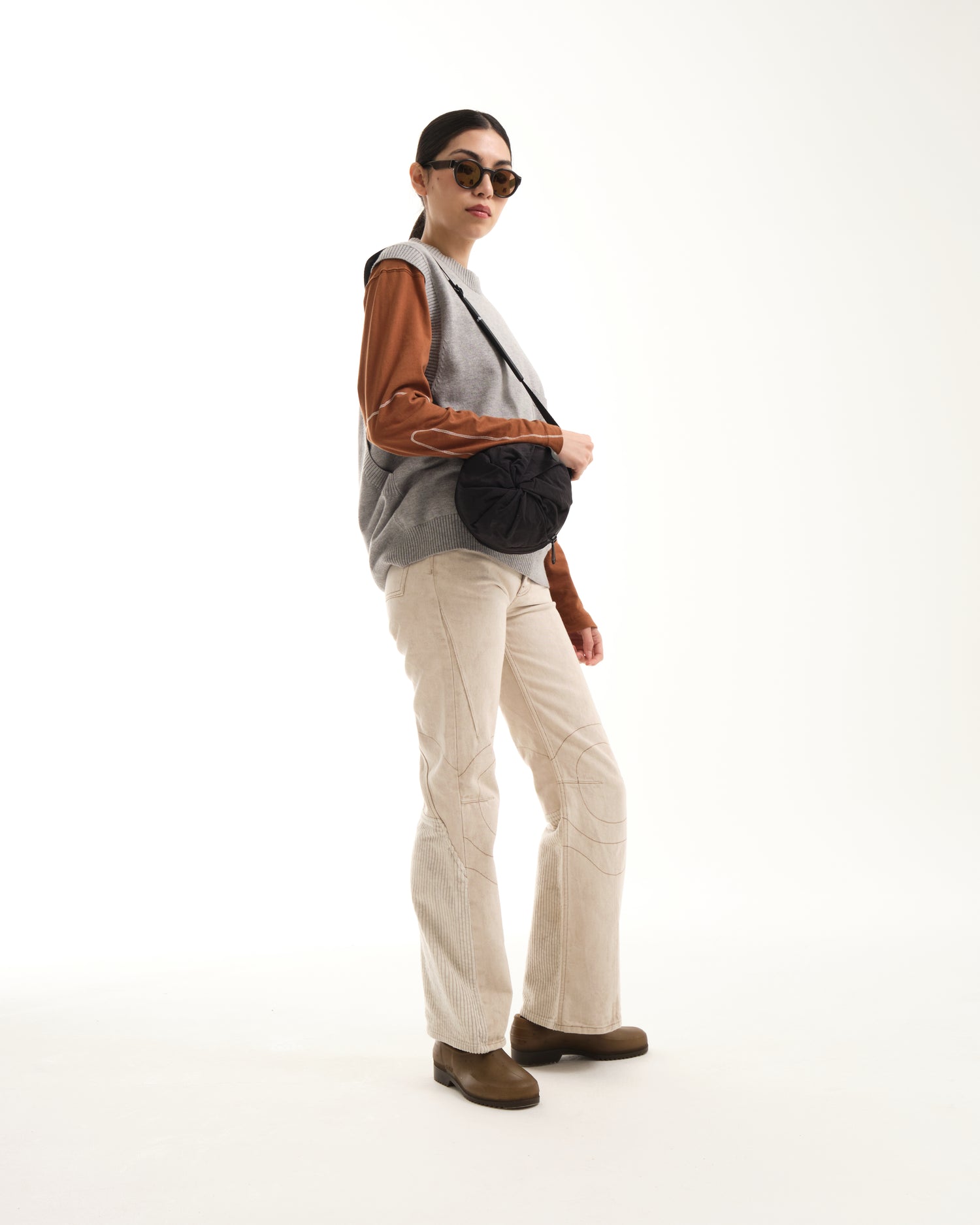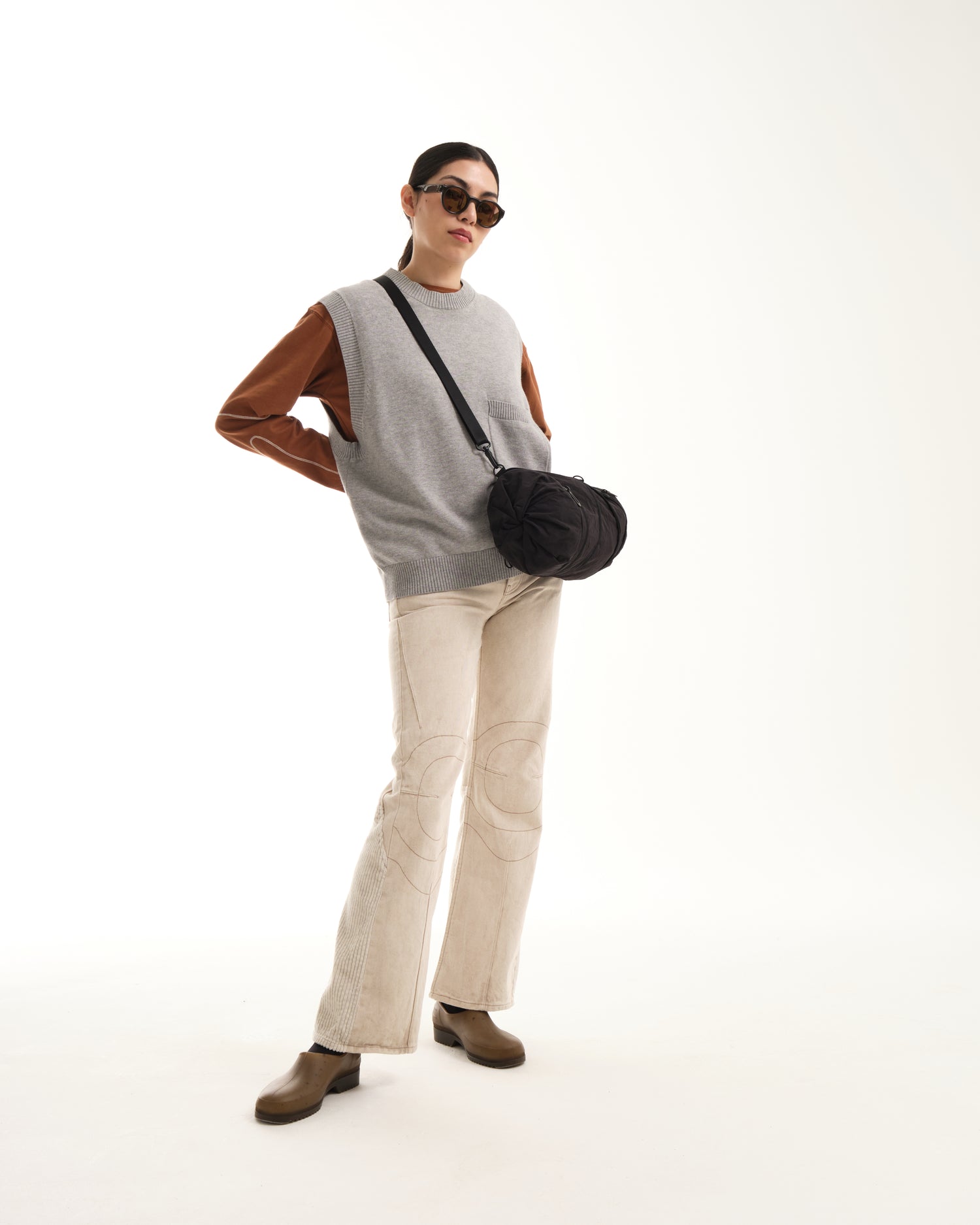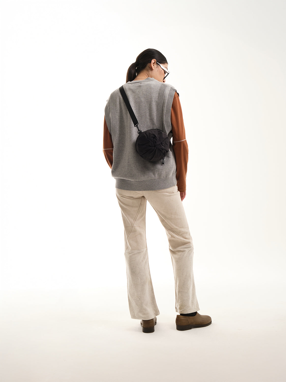 小さいオプションである圧縮 2 ポケット バッグは、ポケットが収納されている両端の生地に独特のひねりが施されているのが特徴です。そして中央のジッパーでバッグを小さなダッフルの形に拡張し、更にその中のジッパーを使用して中央のコンパートメントへアクセスします。