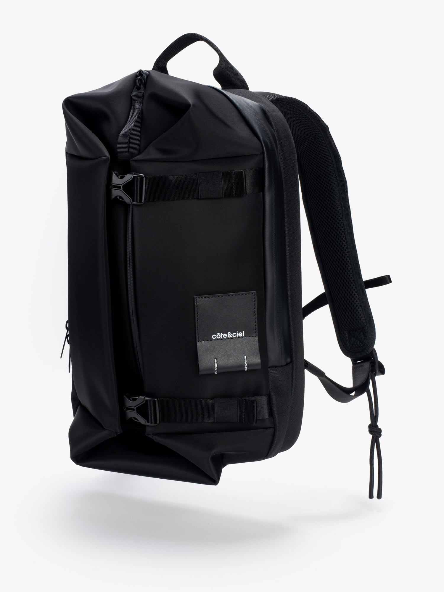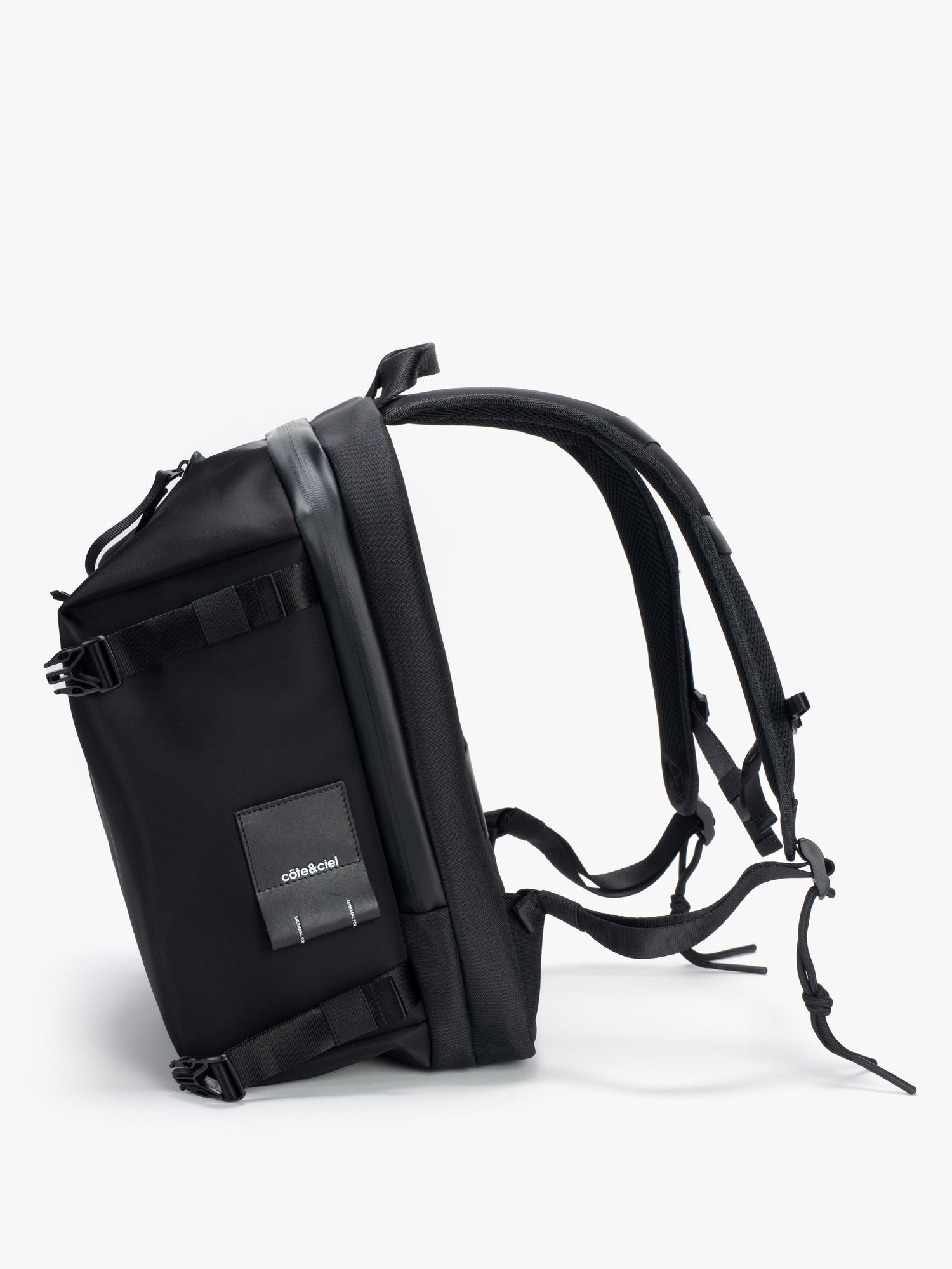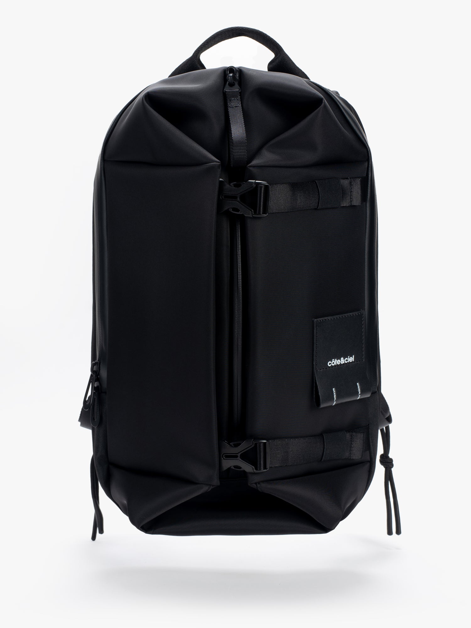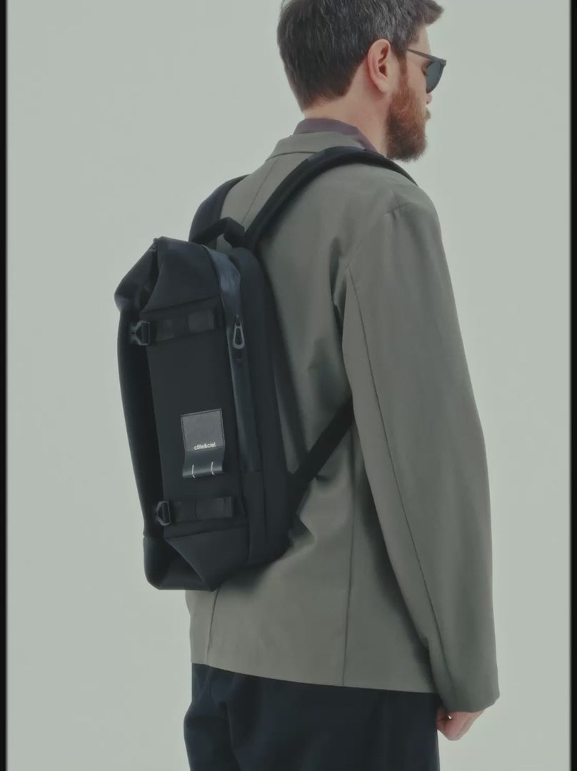 YUKON が、当社の象徴的な洗練されたブラック素材で帰ってきました。驚くべき機能を備えたコンパクトなバックパック。フロントの 2 つのバックルを開くと、キュービック状の前面コンパートメントが最大容量まで拡張されます。